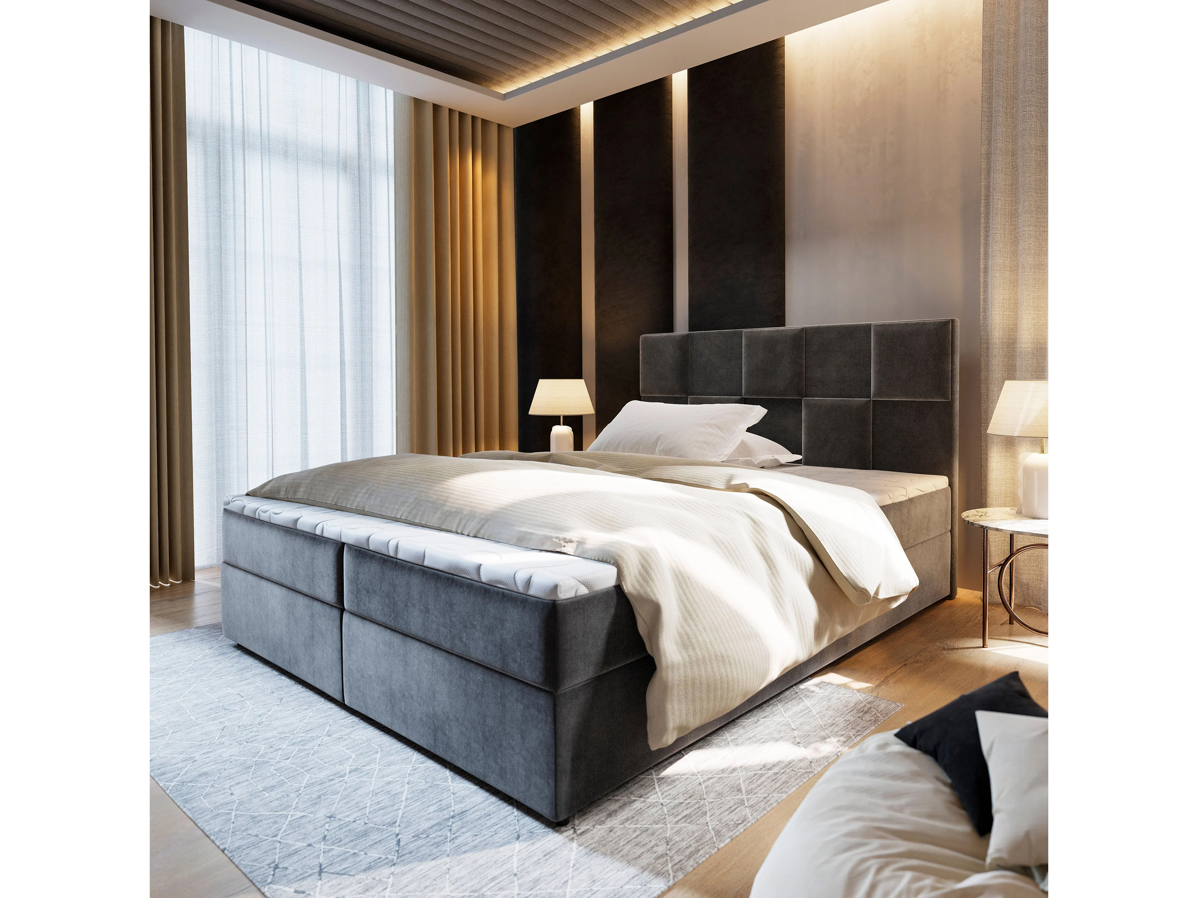 Boxspringbed PRATA 140x200 cm Set met hoofdbord, bedbodem en matras, Grijs