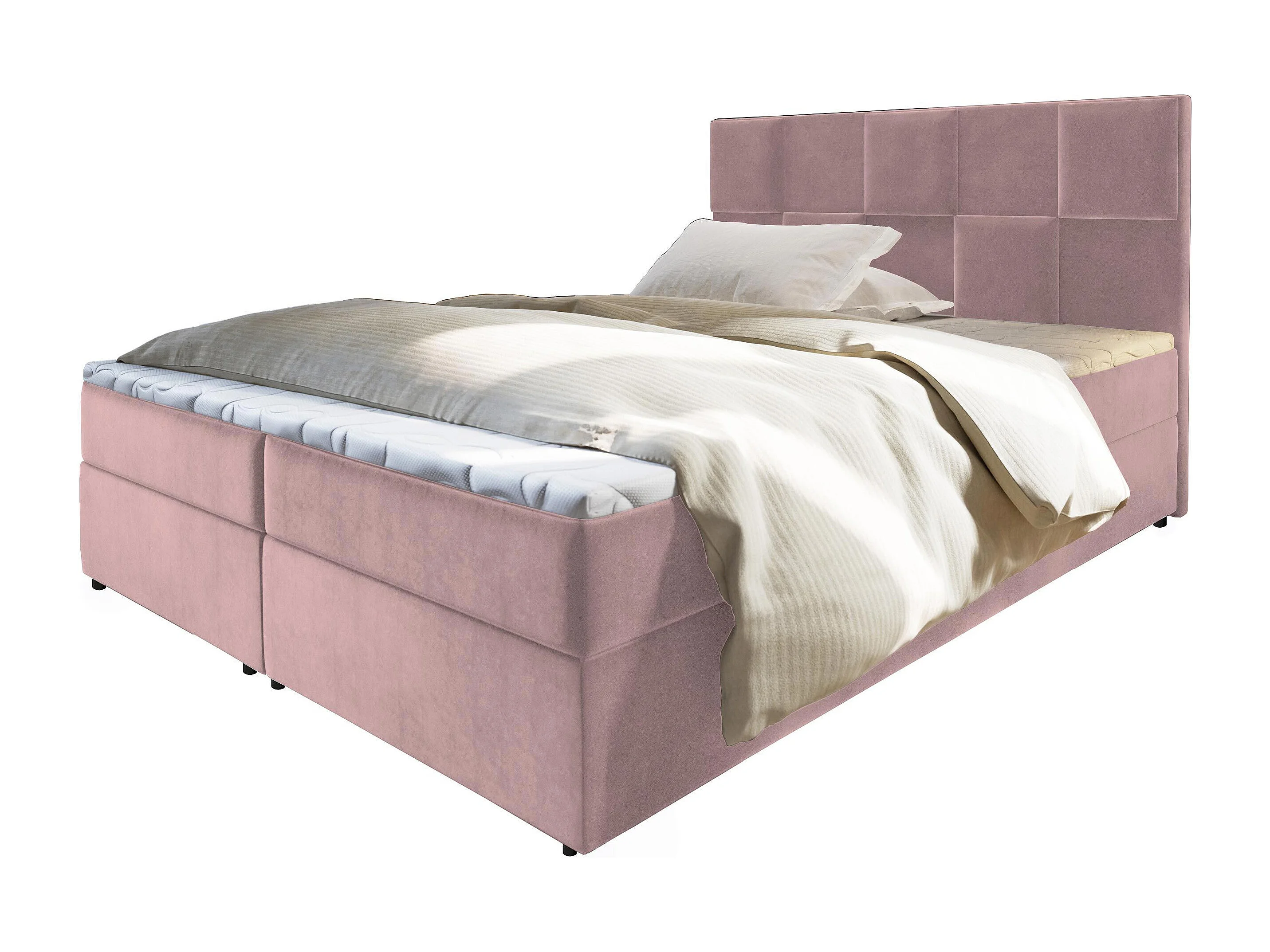 Boxspringbed PRATA 140x200 cm Set met hoofdbord, bedbodem en matras, Poederroze