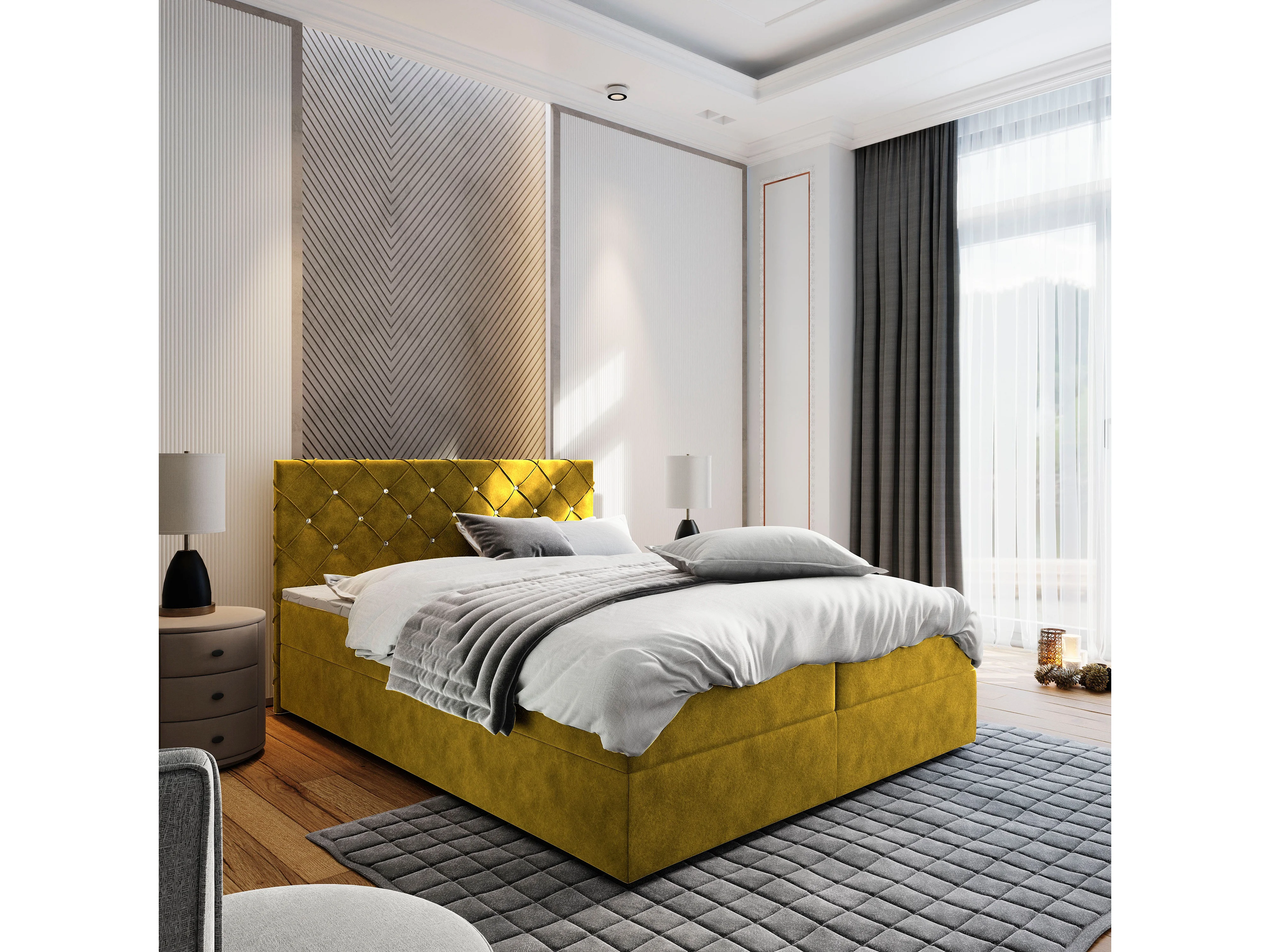 Boxspringbed RIVA 140x200 cm Set met hoofdbord, bedbodem en matras, Geel