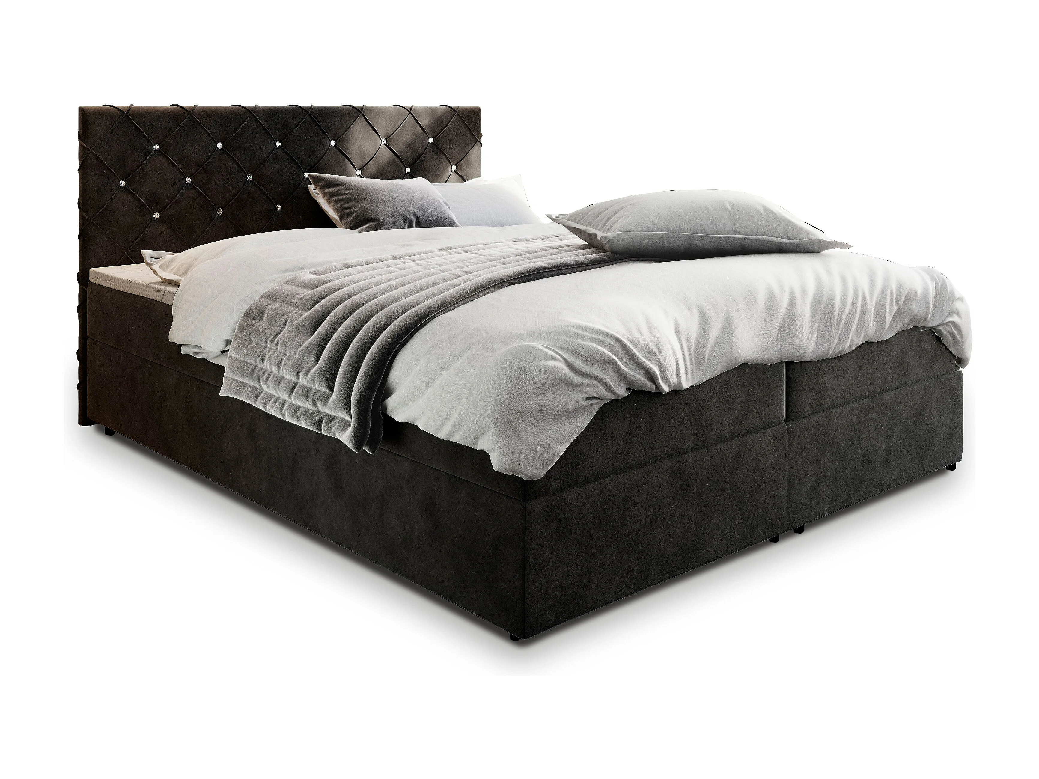 Boxspringbed RIVA 160x200 cm Set met hoofdbord, bedbodem en matras, Zwart