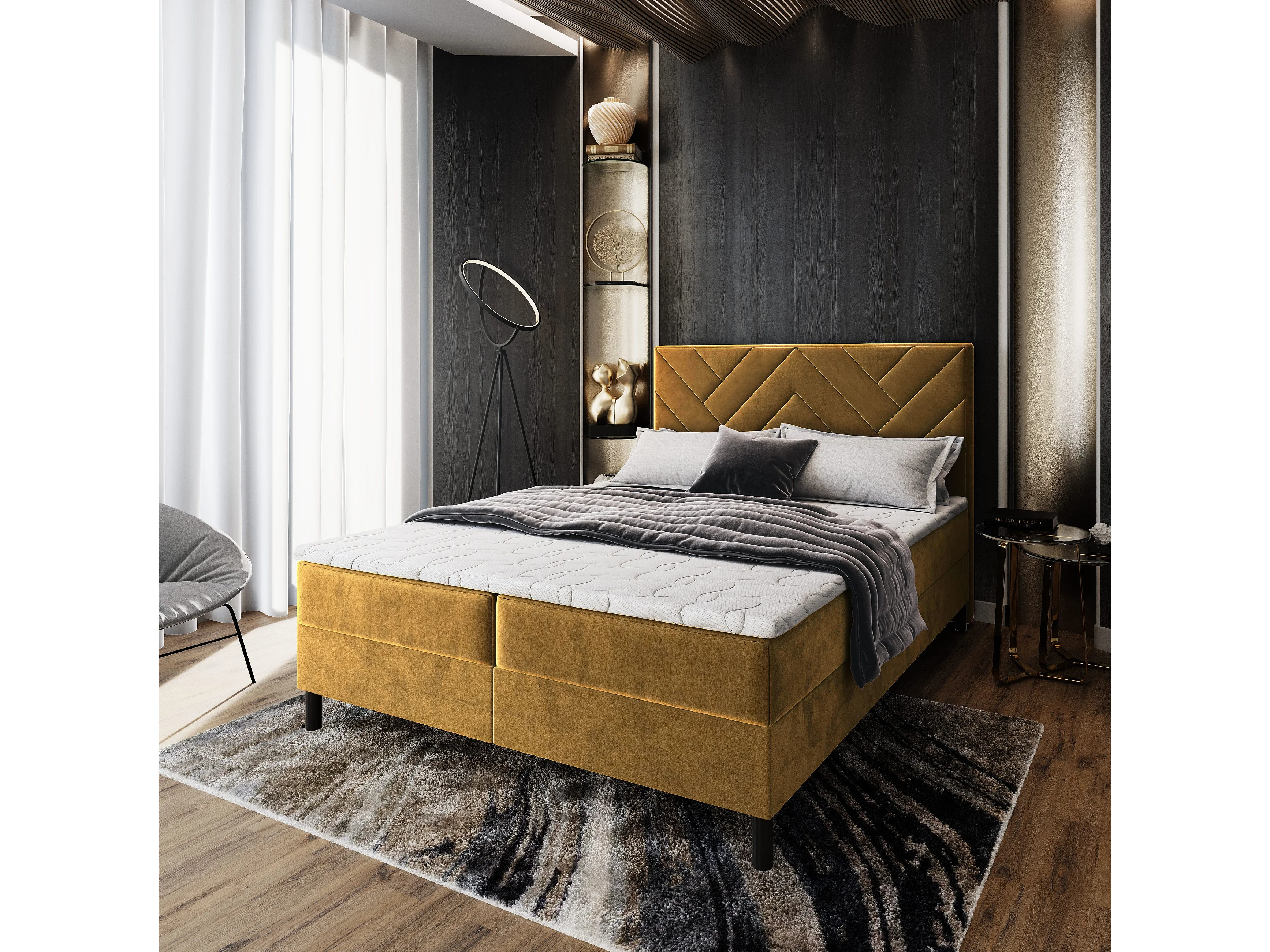 Boxspringbed ROKIS 140x200 cm Set met hoofdbord, bedbodem en matras, Geel