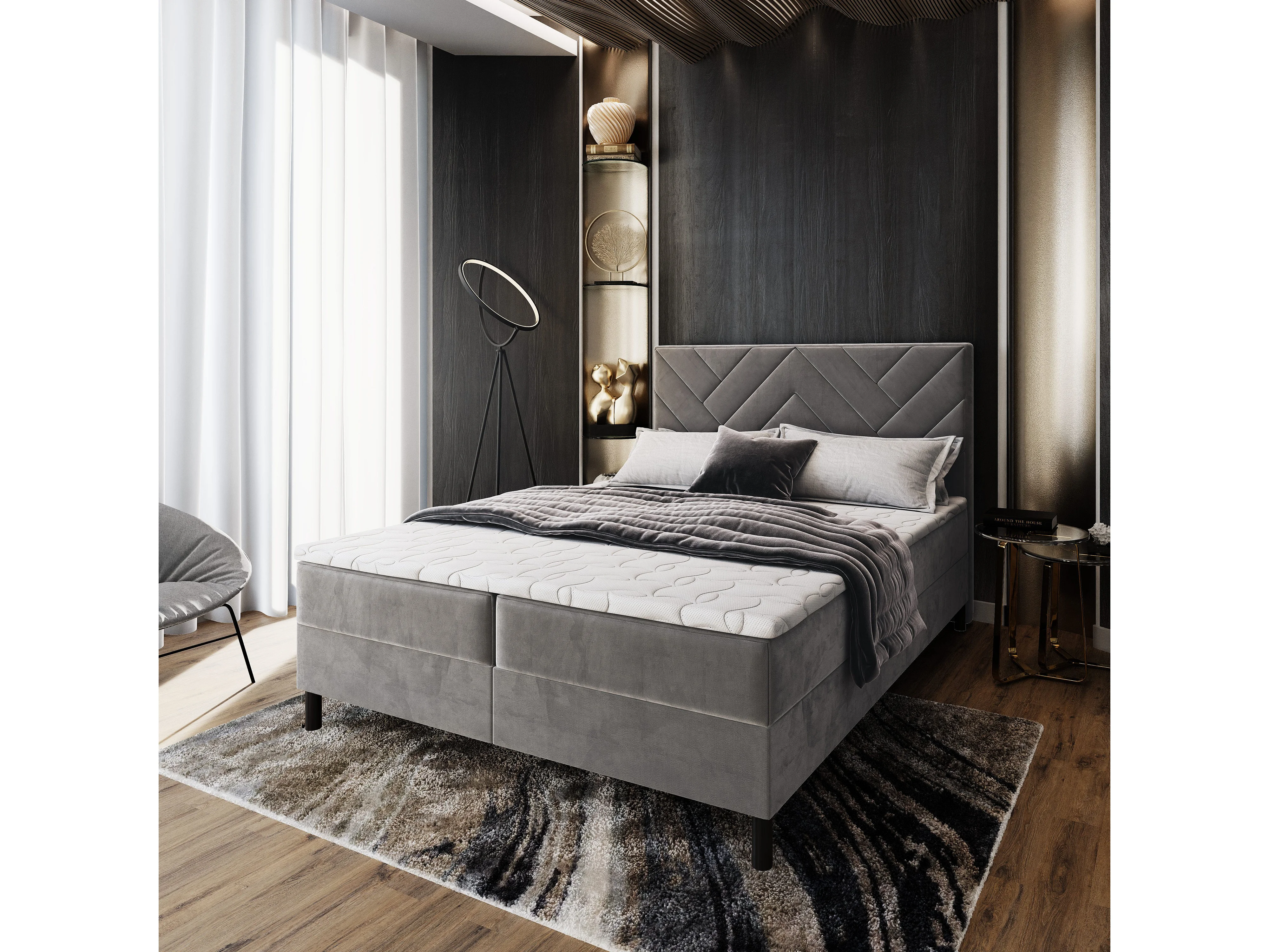 Boxspringbed ROKIS 160x200 cm Set met hoofdbord, bedbodem en matras, Grijs