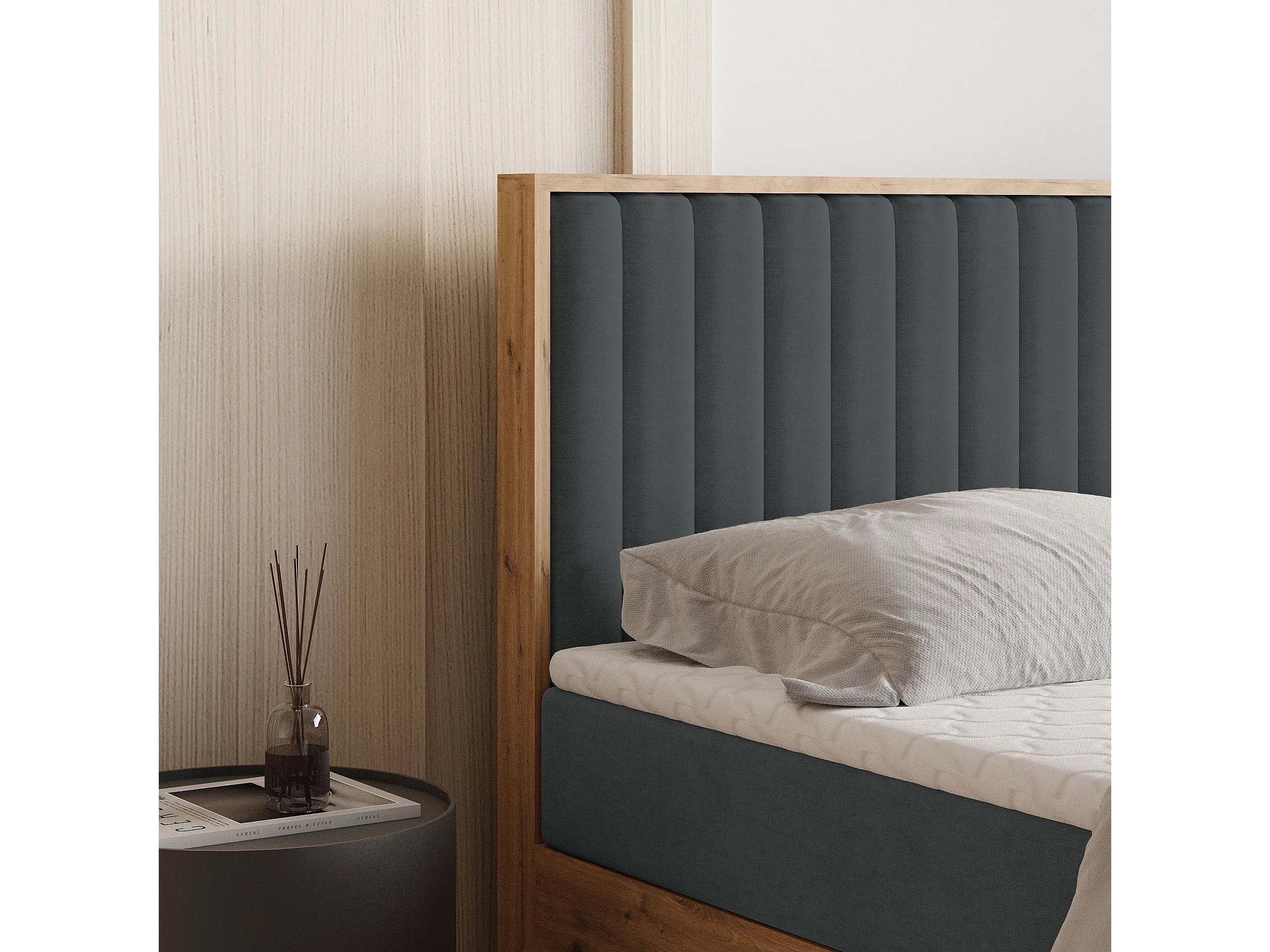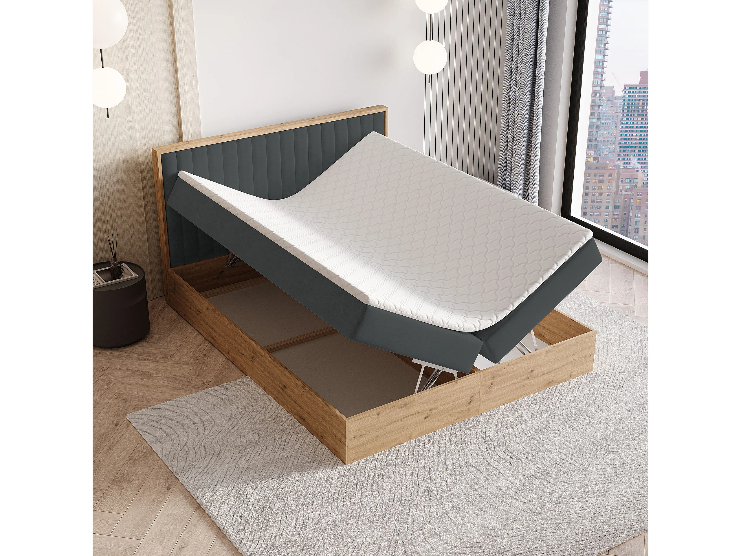 Boxspringbed VARELI 180x200 cm Set met hoofdbord, bedbodem en matras, Antracietgrijs