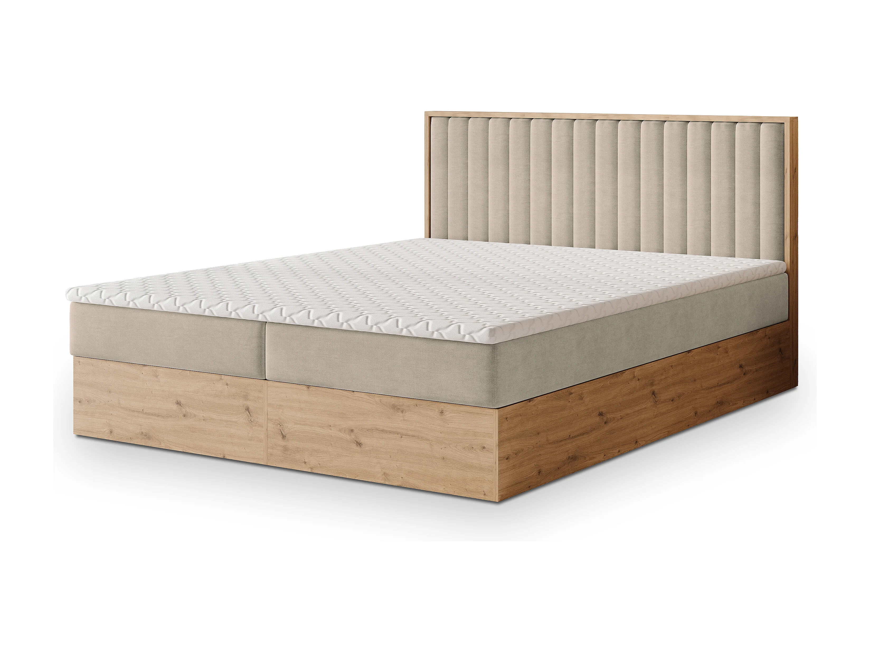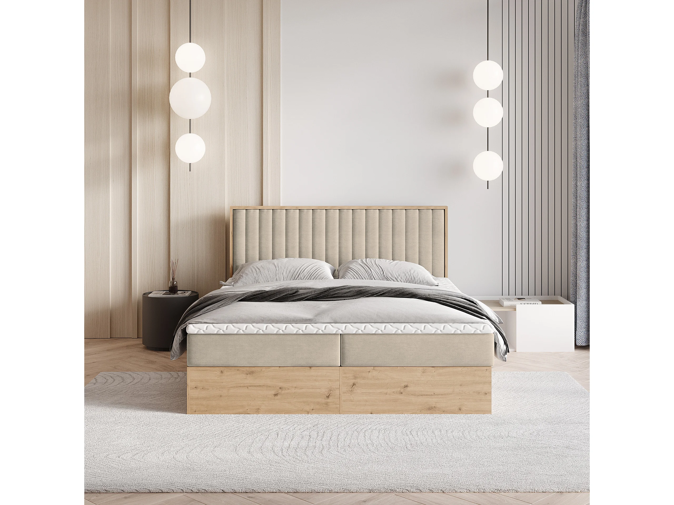 Boxspringbed VARELI 180x200 cm Set met hoofdbord, bedbodem en matras, Beige