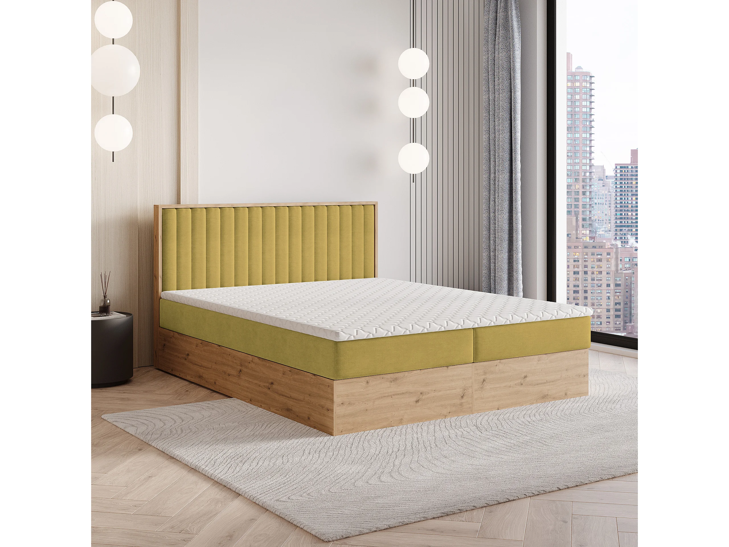 Boxspringbed VARELI 180x200 cm Set met hoofdbord, bedbodem en matras, Geel
