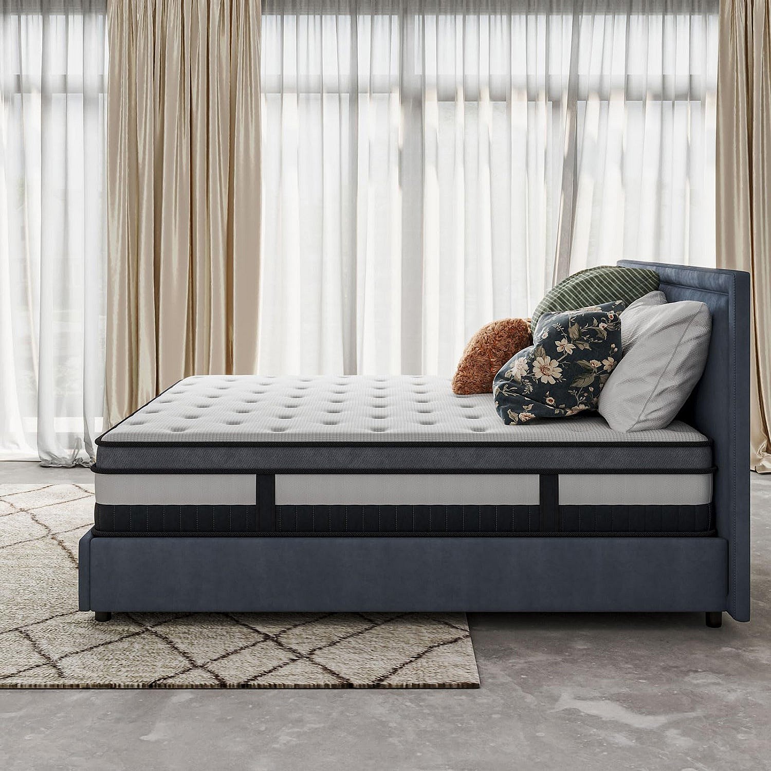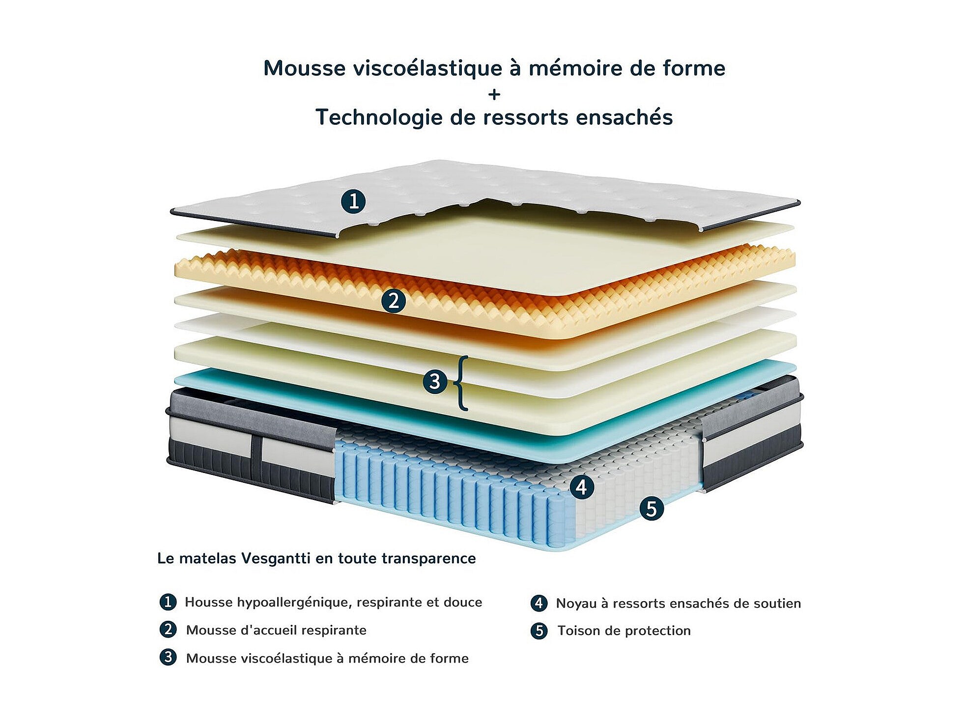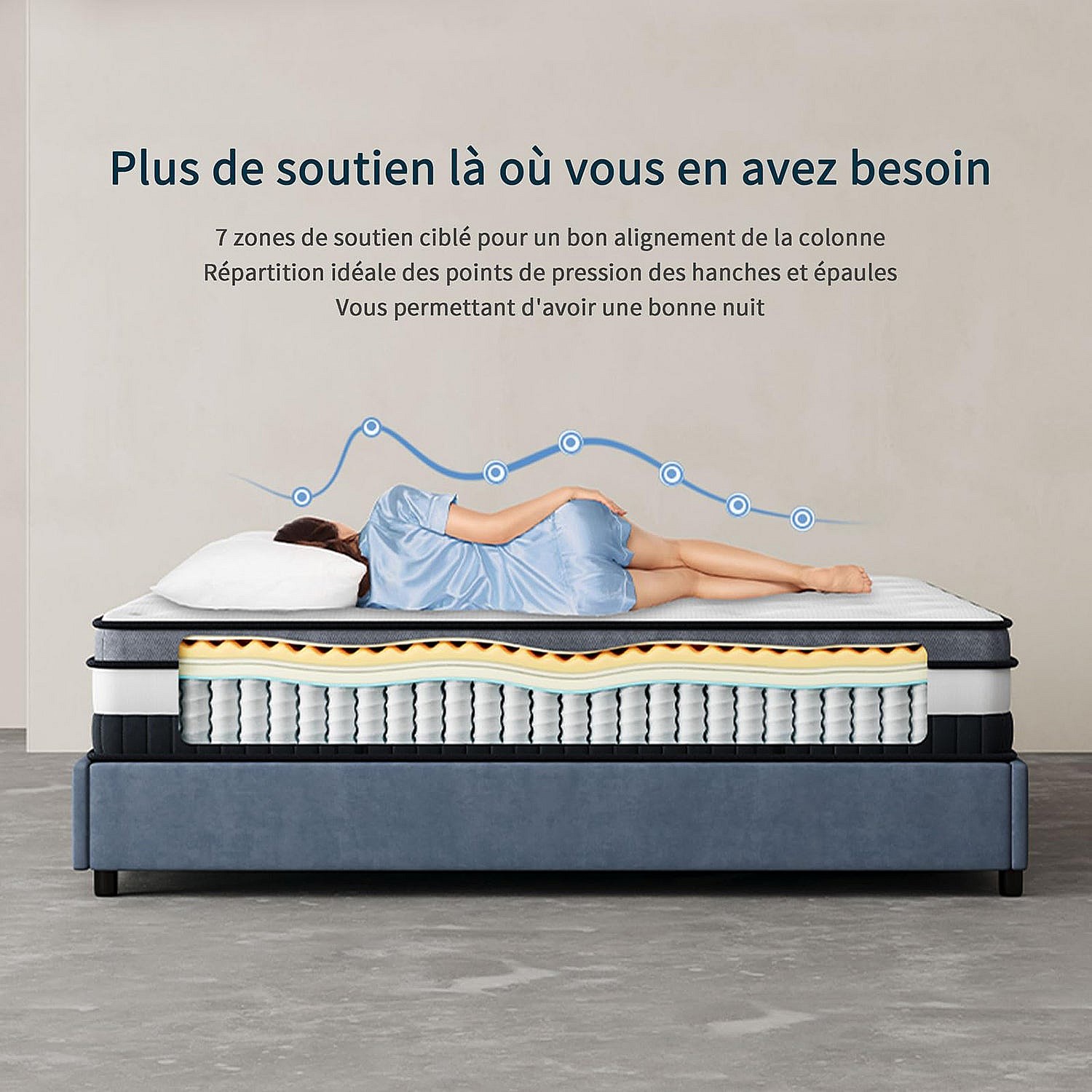 Boxtop matras 90x200cm, dikte 30cm, Nova Luxe Hybrid, pocketveren en traagschuim, 7-zone comfort, hoogwaardige meerlaagse matras