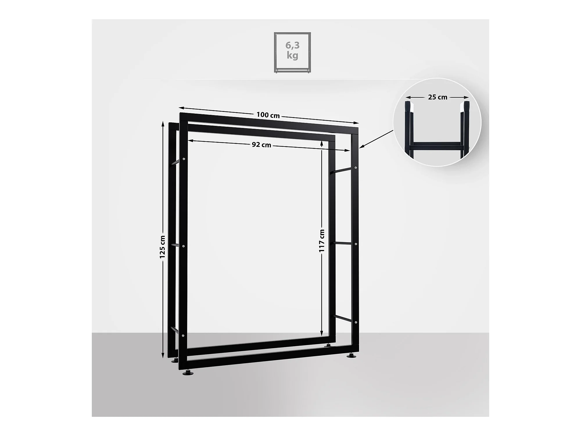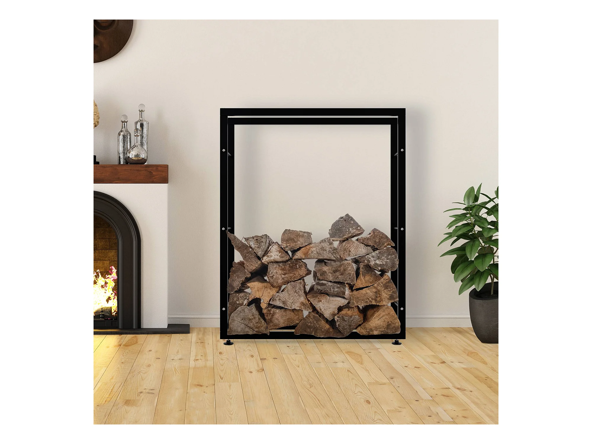 Brandhoutrek - Metaal - 25x100x125 cm - zwart - Keri V2