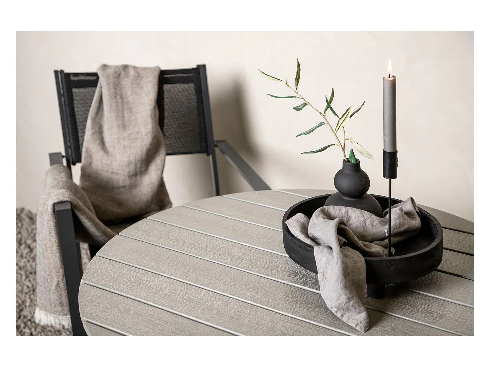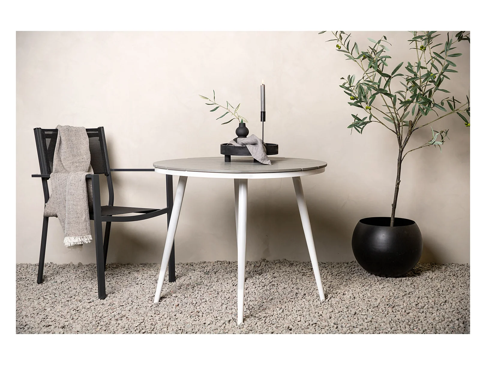 Break eettafel tuin Ø90cm witgrijs.