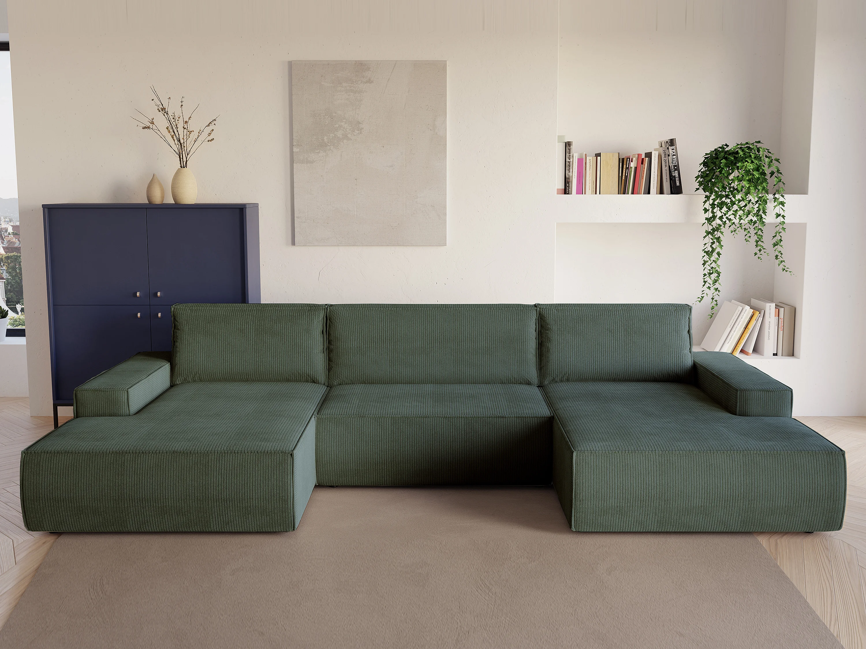 XXL hoekslaapbank van spargroen ribfluweel AMELIA