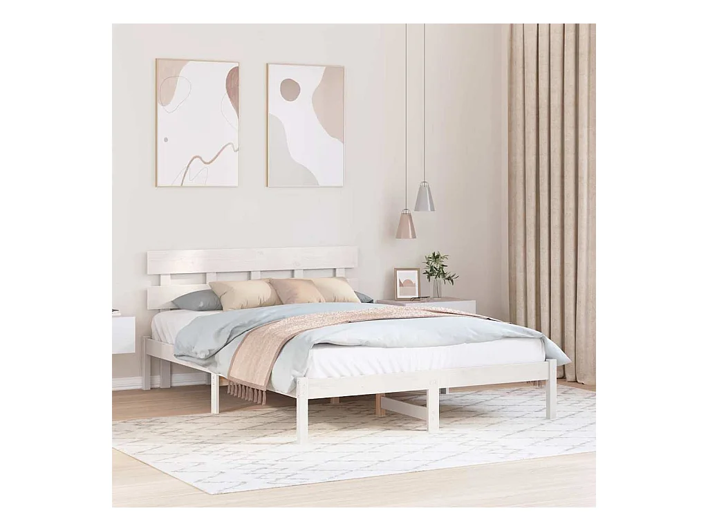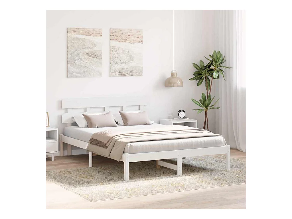 Wit bedframe 140 x 200 cm Massief grenenhout