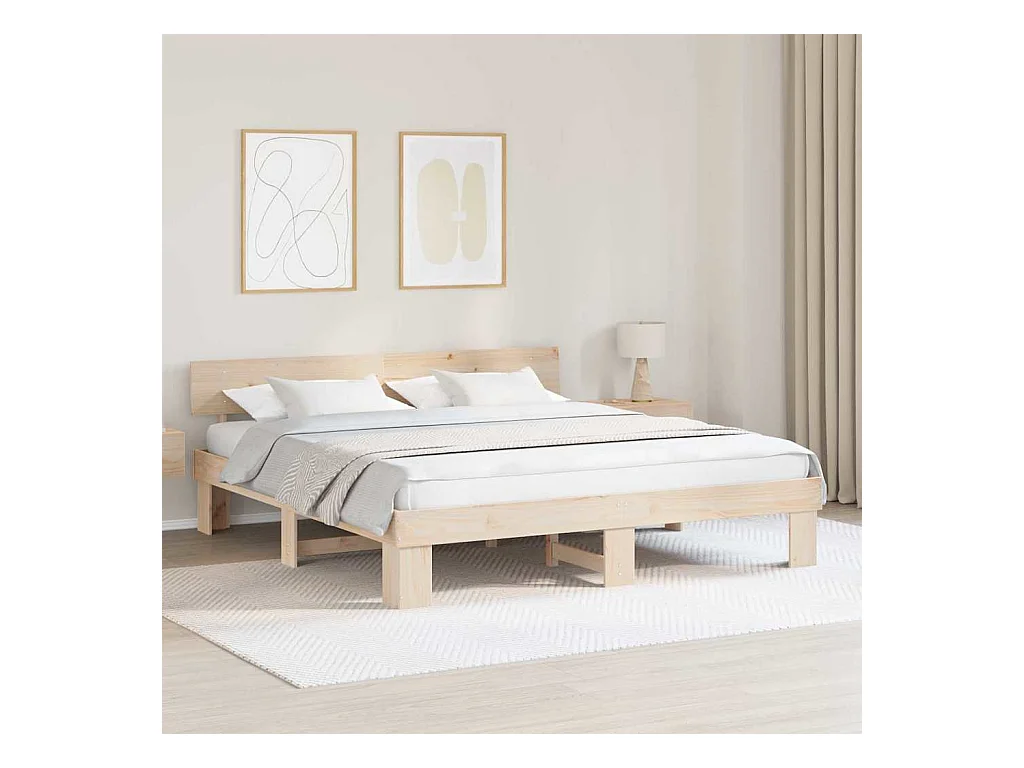 Bruin bedframe 180 x 200 cm massief grenenhout