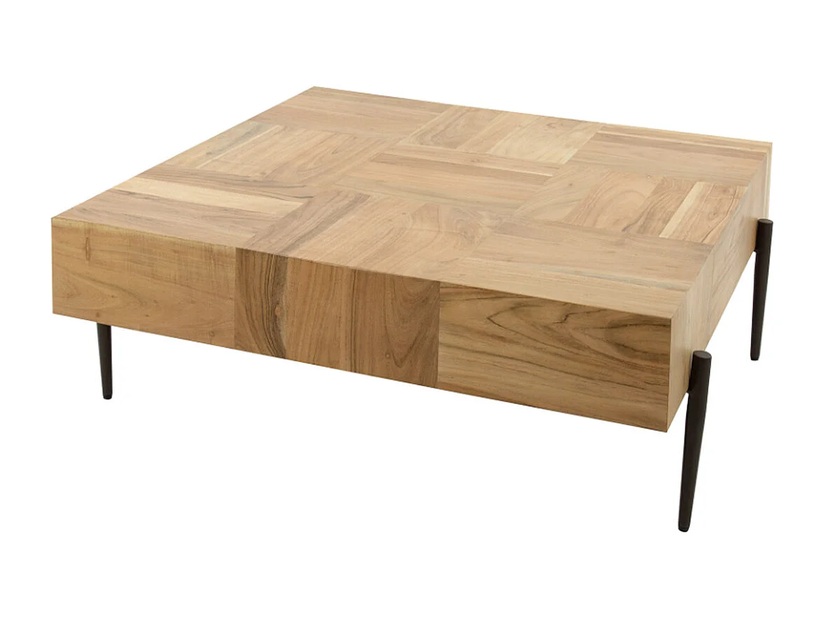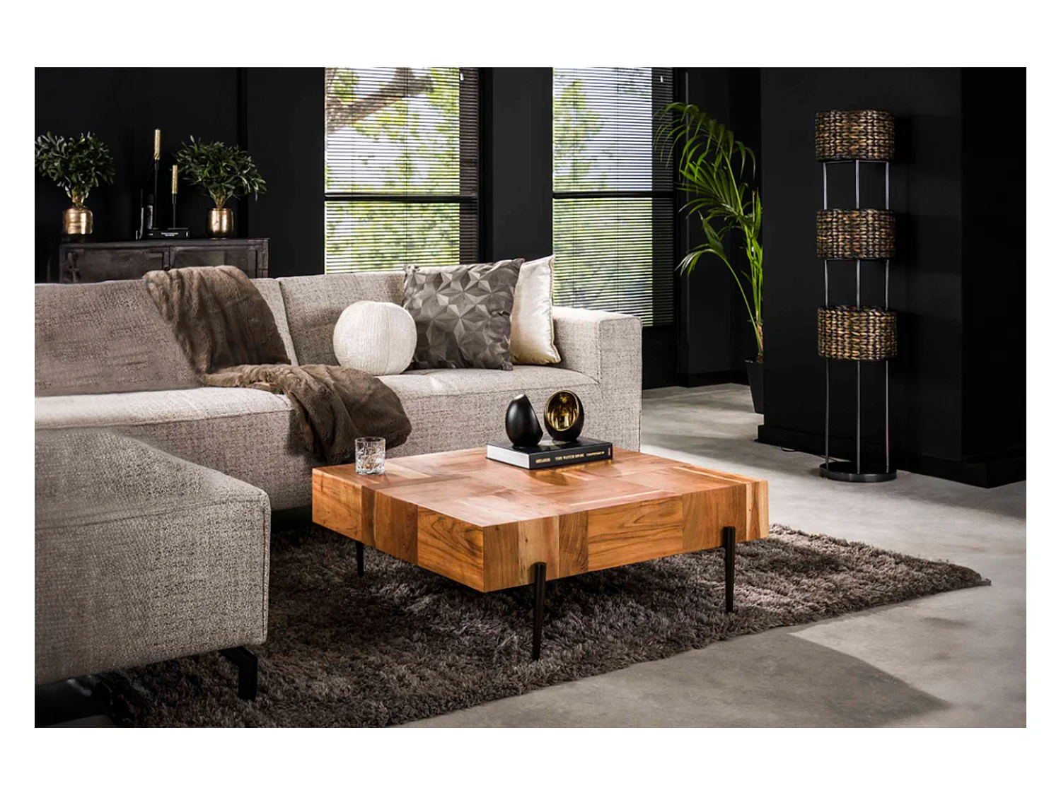 Vierkante salontafel van massief mangohout, natuurlijke afwerking