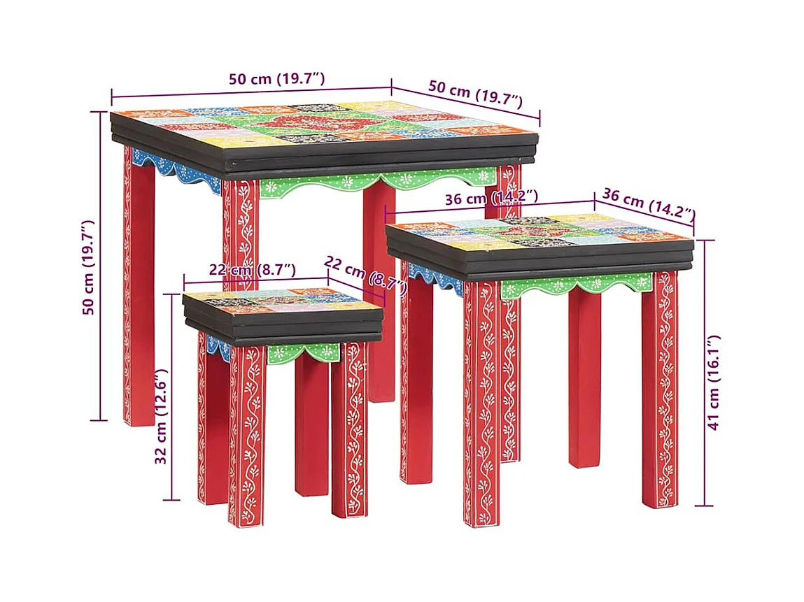 Bruine bijzettafel 50 x 50 x 50 cm massief mangohout