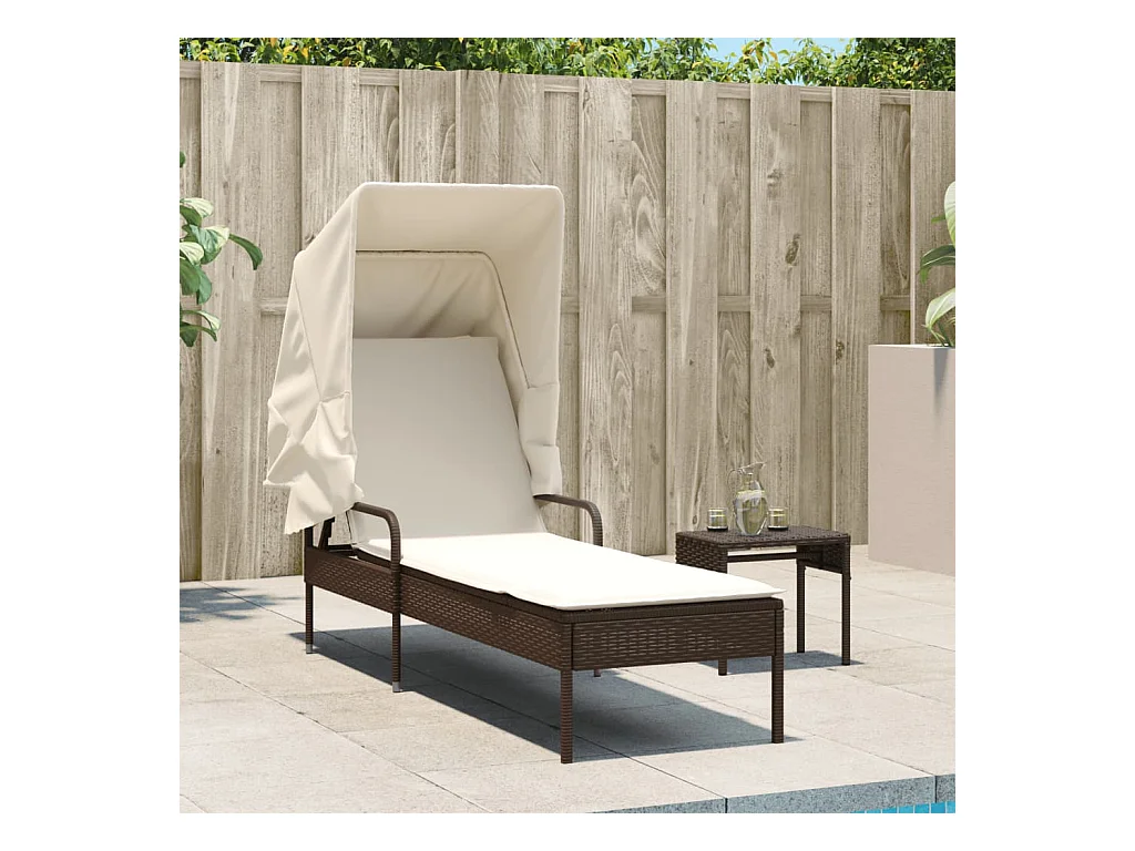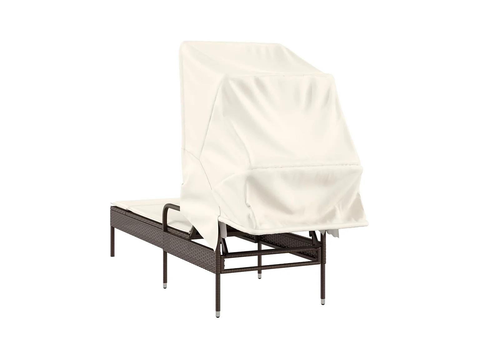 Dubbele loungestoel met baldakijn en bruine polyrotan kussens
