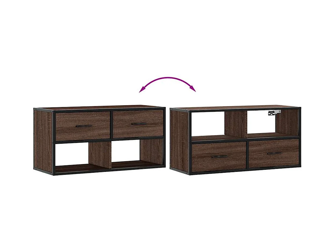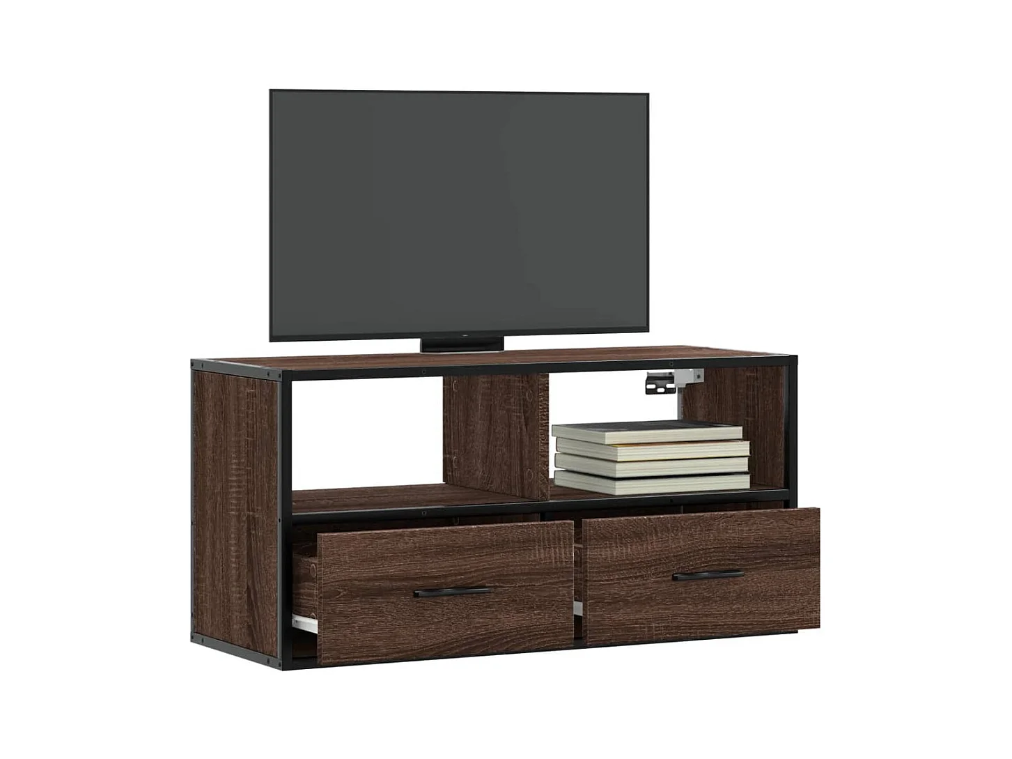 TV-meubel van gerookt eikenhout 100x31x39,5 cm, bewerkt hout en metaal