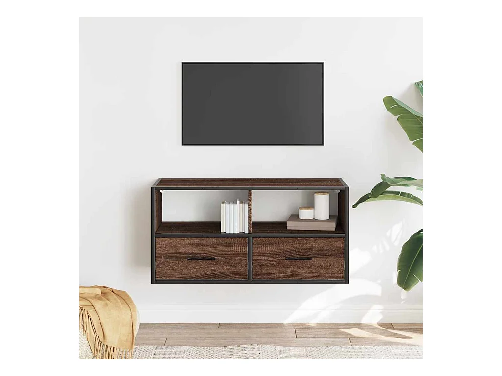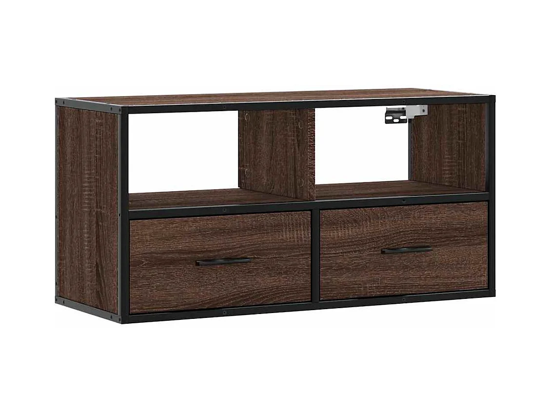 TV-meubel van gerookt eikenhout 80x31x39,5 cm, bewerkt hout en metaal