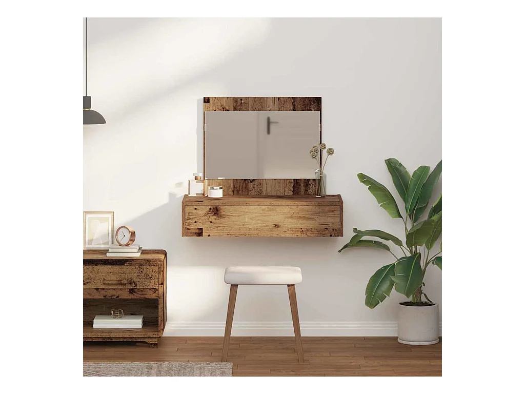 Kaptafel en kruk in bruin eikenhout 60x40x113,5 cm