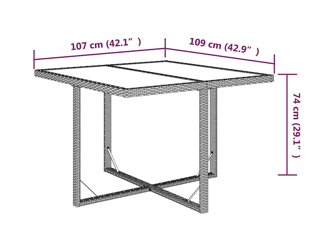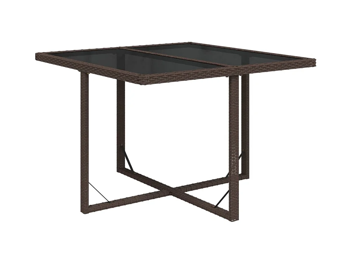Bruine tuintafel 109x107x74 cm Geweven hars en glas