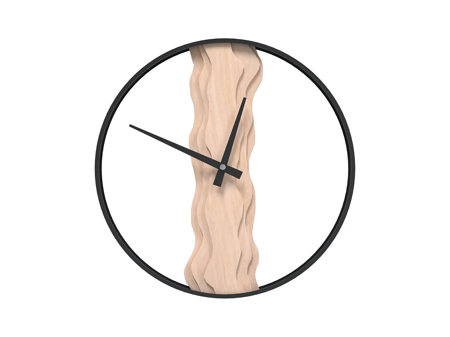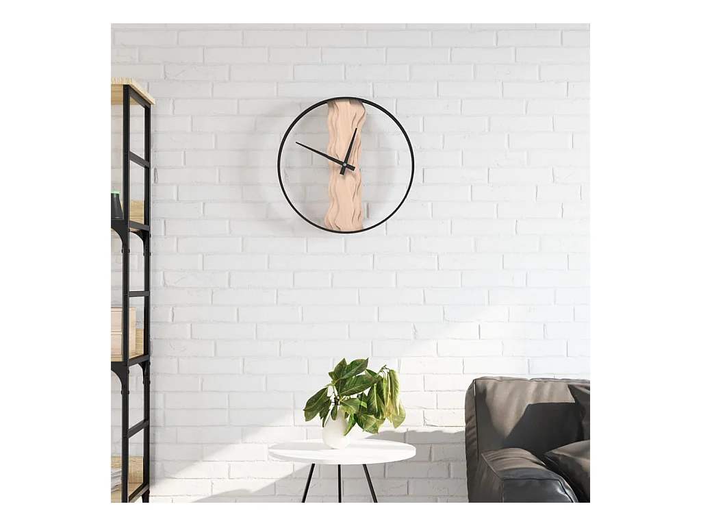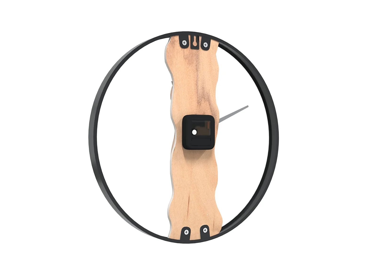 Bruine wandklok Ø35 cm ijzer en olijfhout