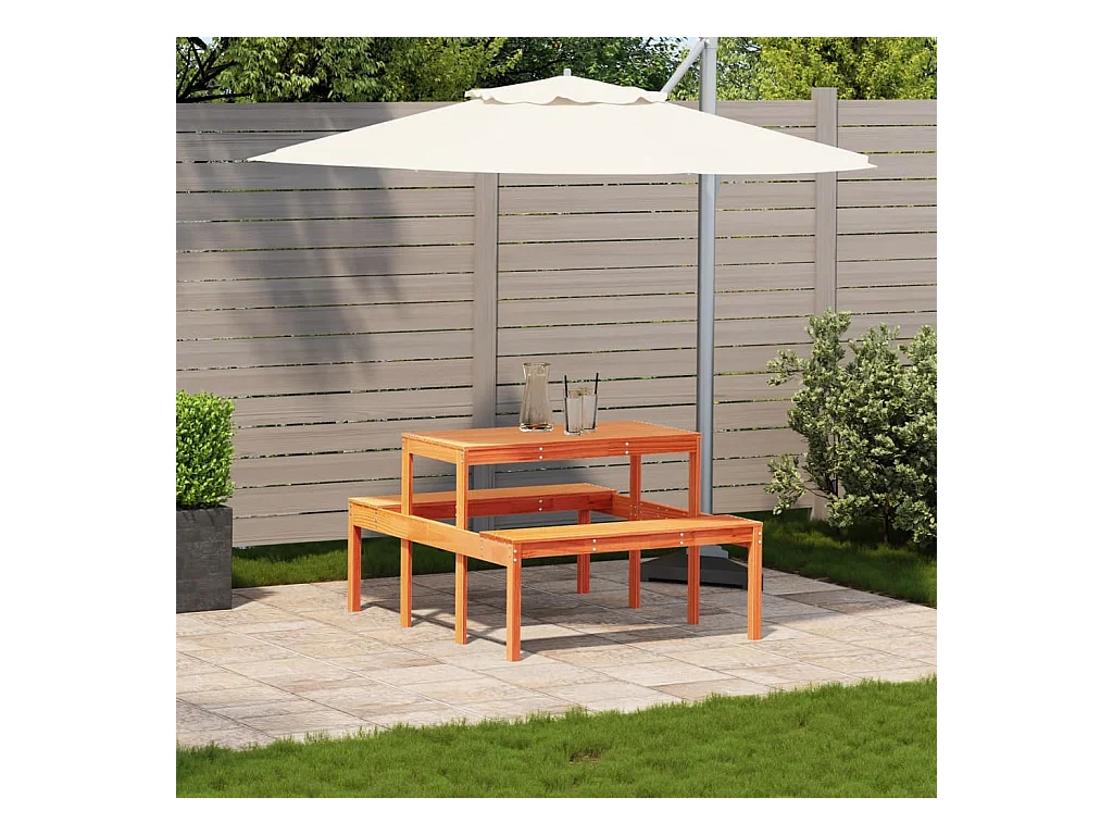 Bruine was picknicktafel 110x134x75 cm massief grenenhout