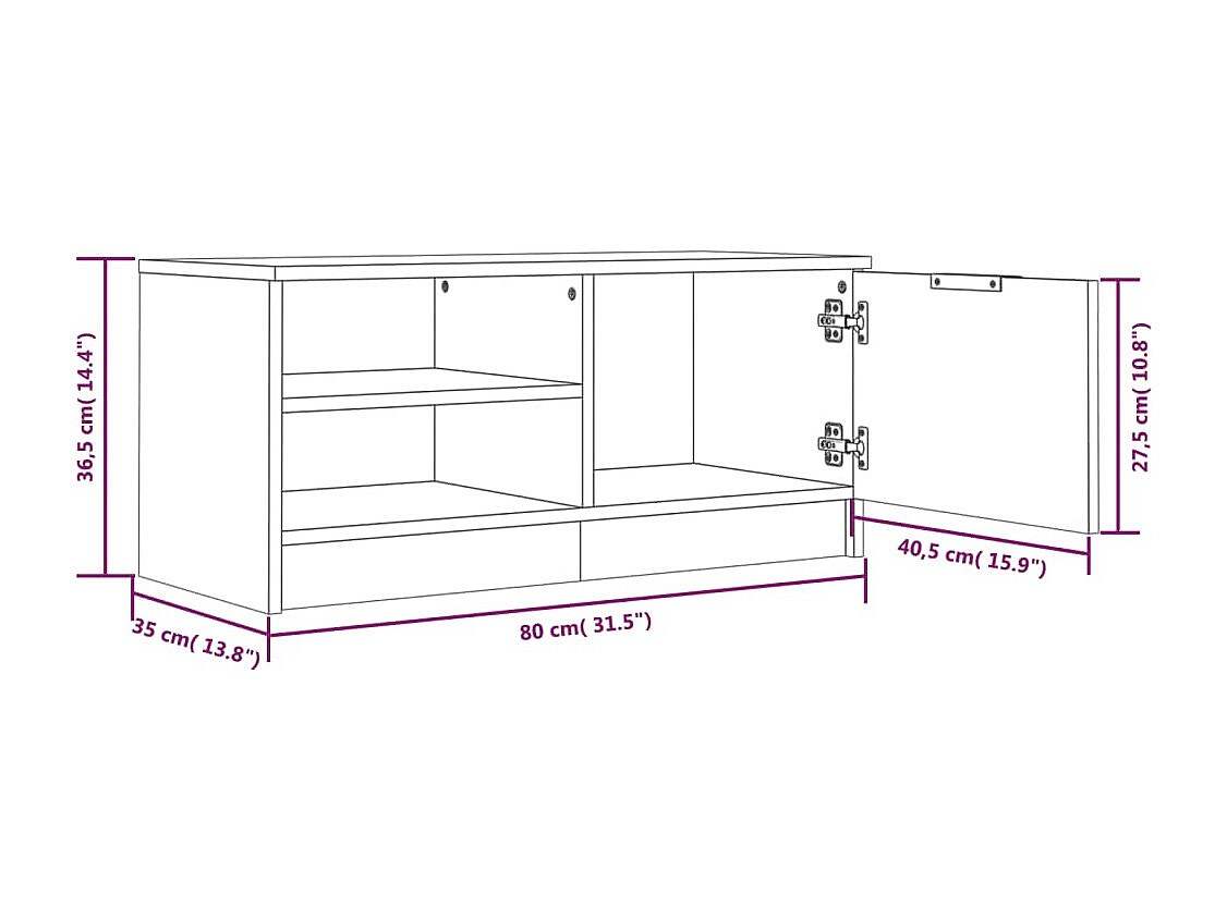 Bryvra Tv-meubel 80x35x36,5 cm bewerkt hout wit