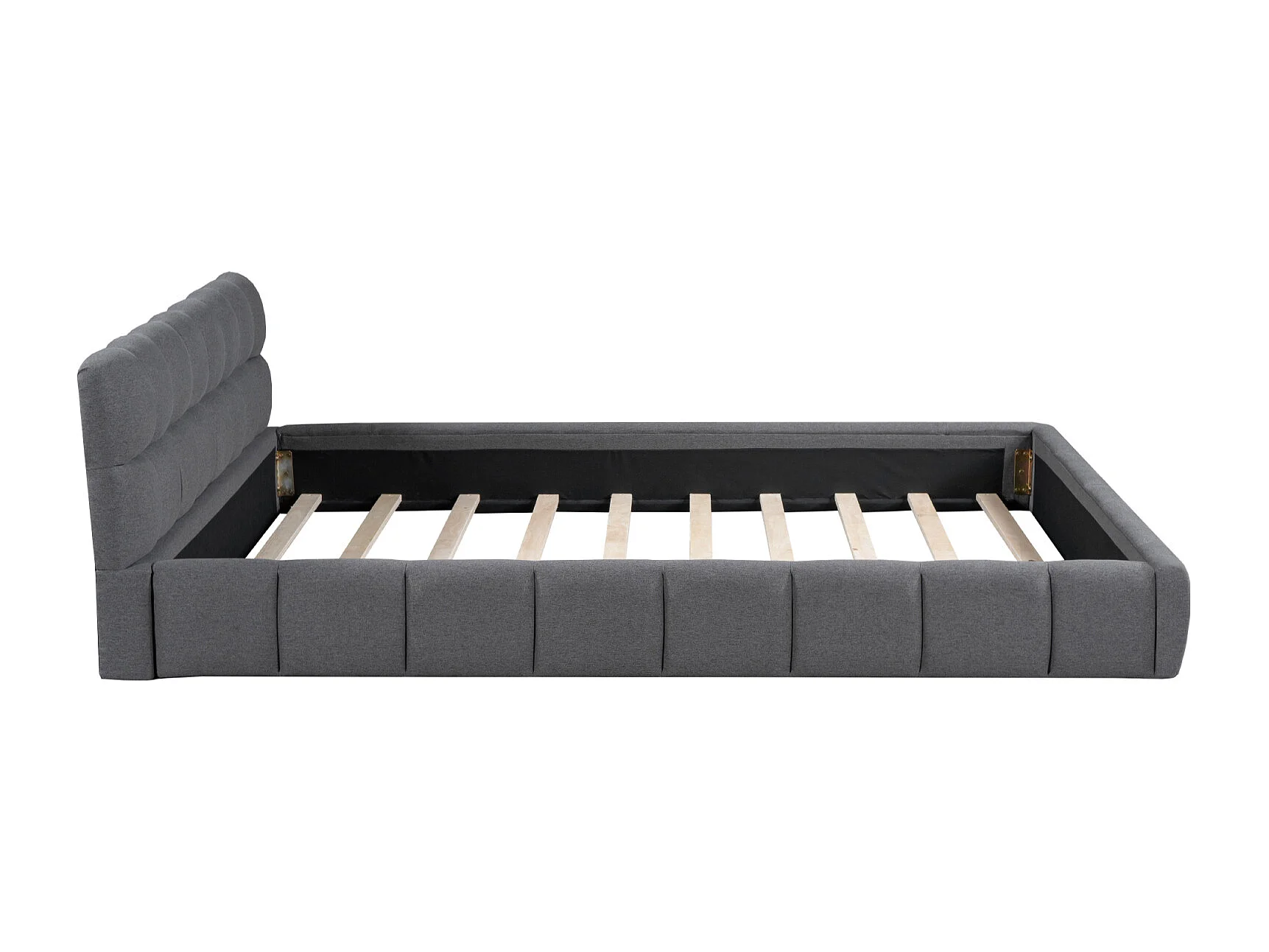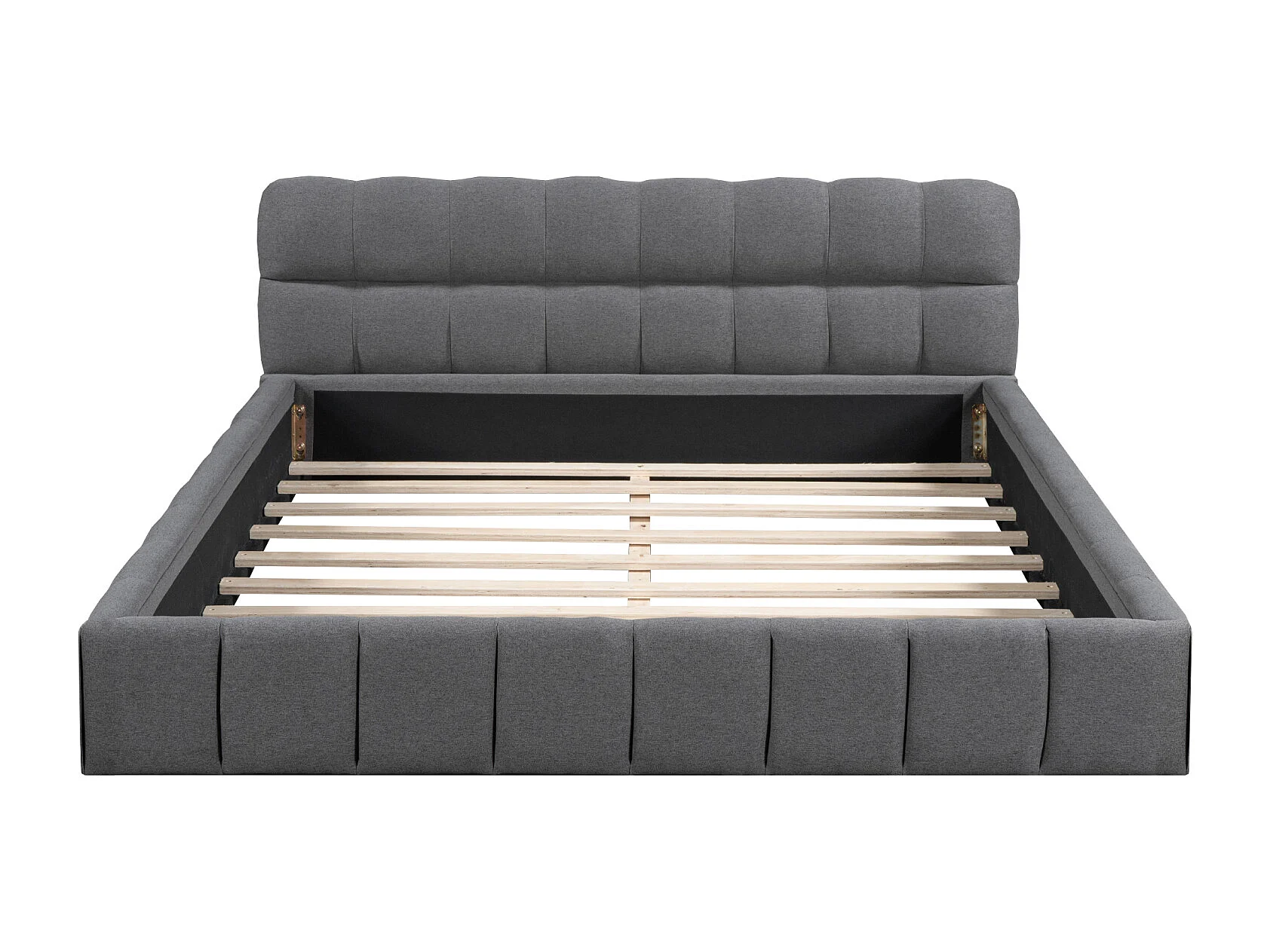 Bubbelbed 160 x 200 cm met lattenbodem en rugleuning, gestoffeerd tweepersoonsbed, linnen, grijs