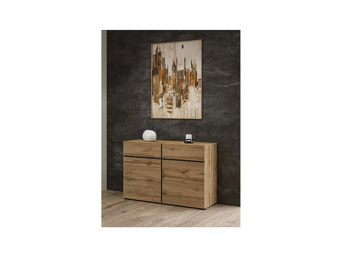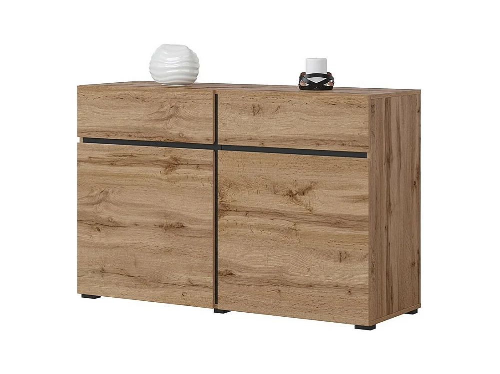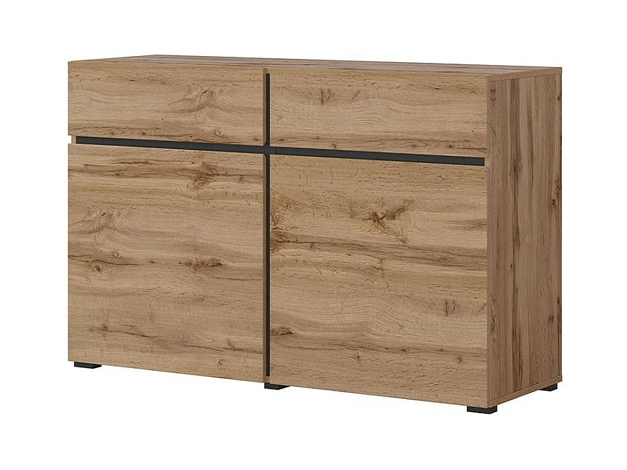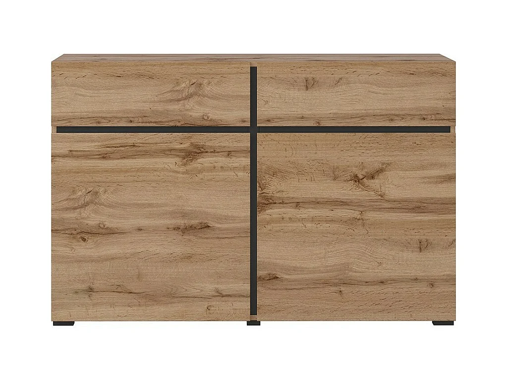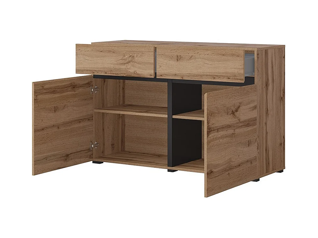 Buffet 120cm kleur eiken en zwart, collectie HAVANA. Dressoir met 2 deuren en 2 laden.