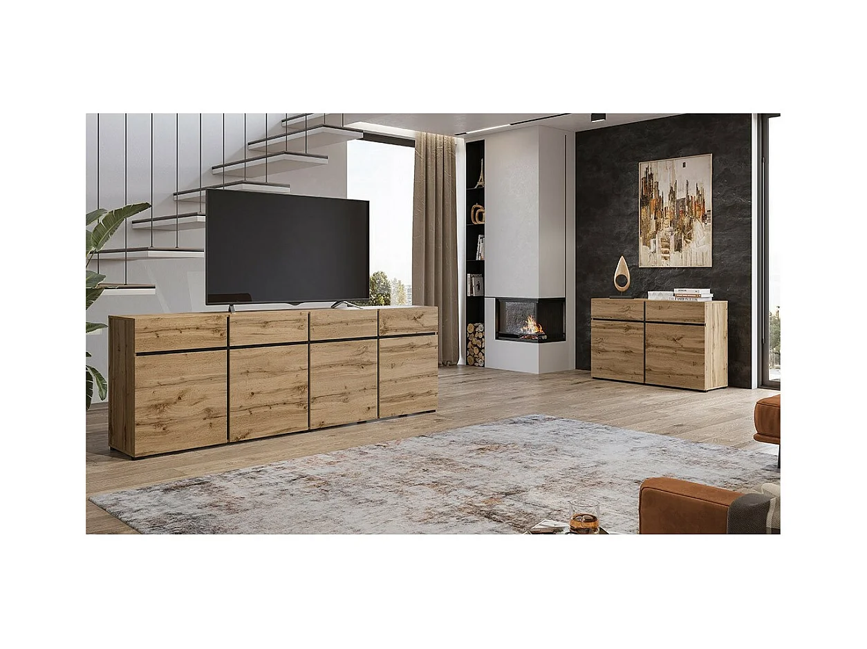 Klein buffet HAVANA – 4 laden – Eiken en zwart – Natuurlijke en moderne stijl