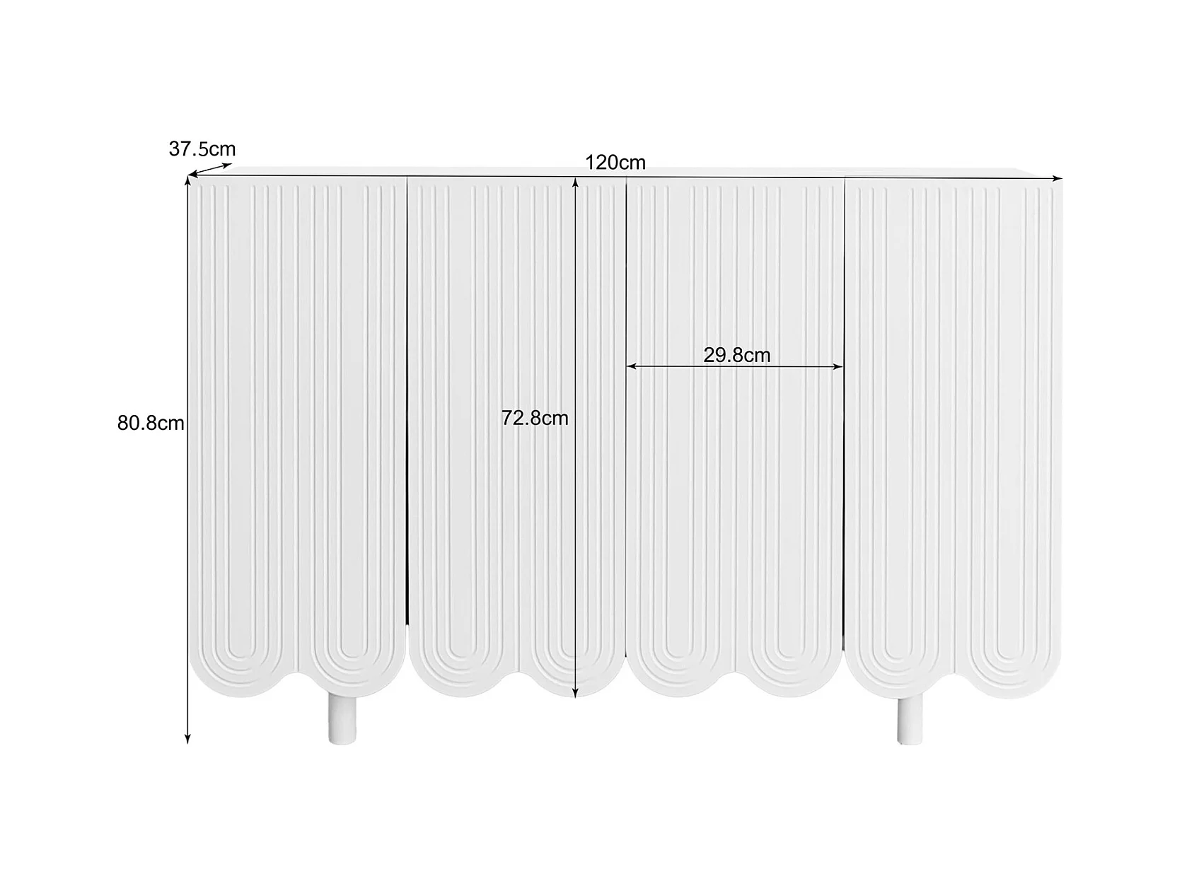 Dressoir 120x80,8x37,5cm, traanvormig dressoir met 4 geprofileerde deuren en bufferscharnier, wit