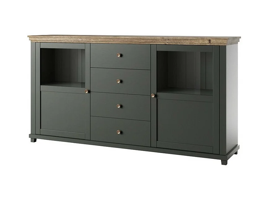 Buffet 180cm collectie ASSIA. Kleur groen en eiken. 2 deuren en 4 laden.