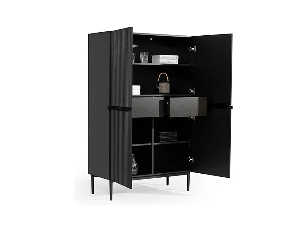 Buffet 2 deuren 3 planken centraal zwart met bont metaal zwart 150x45 cm