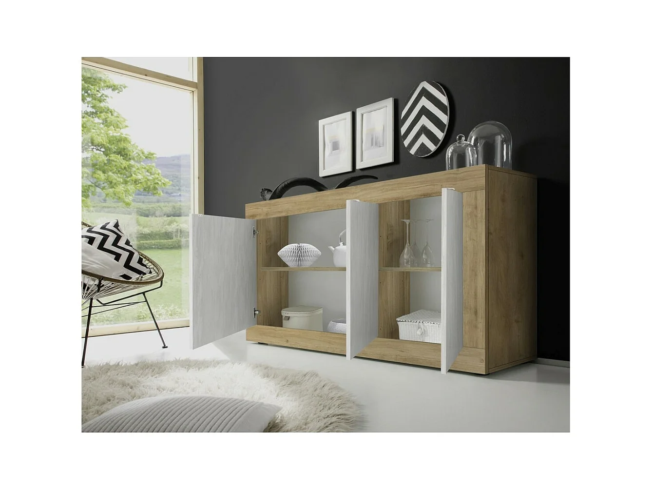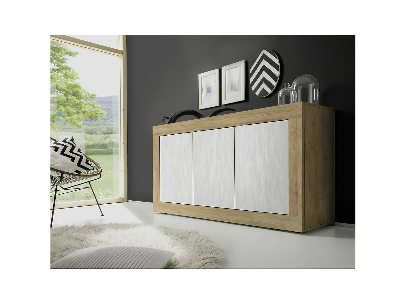 Buffet 3 deuren collectie ACCESS. Kleur wit en licht eiken.