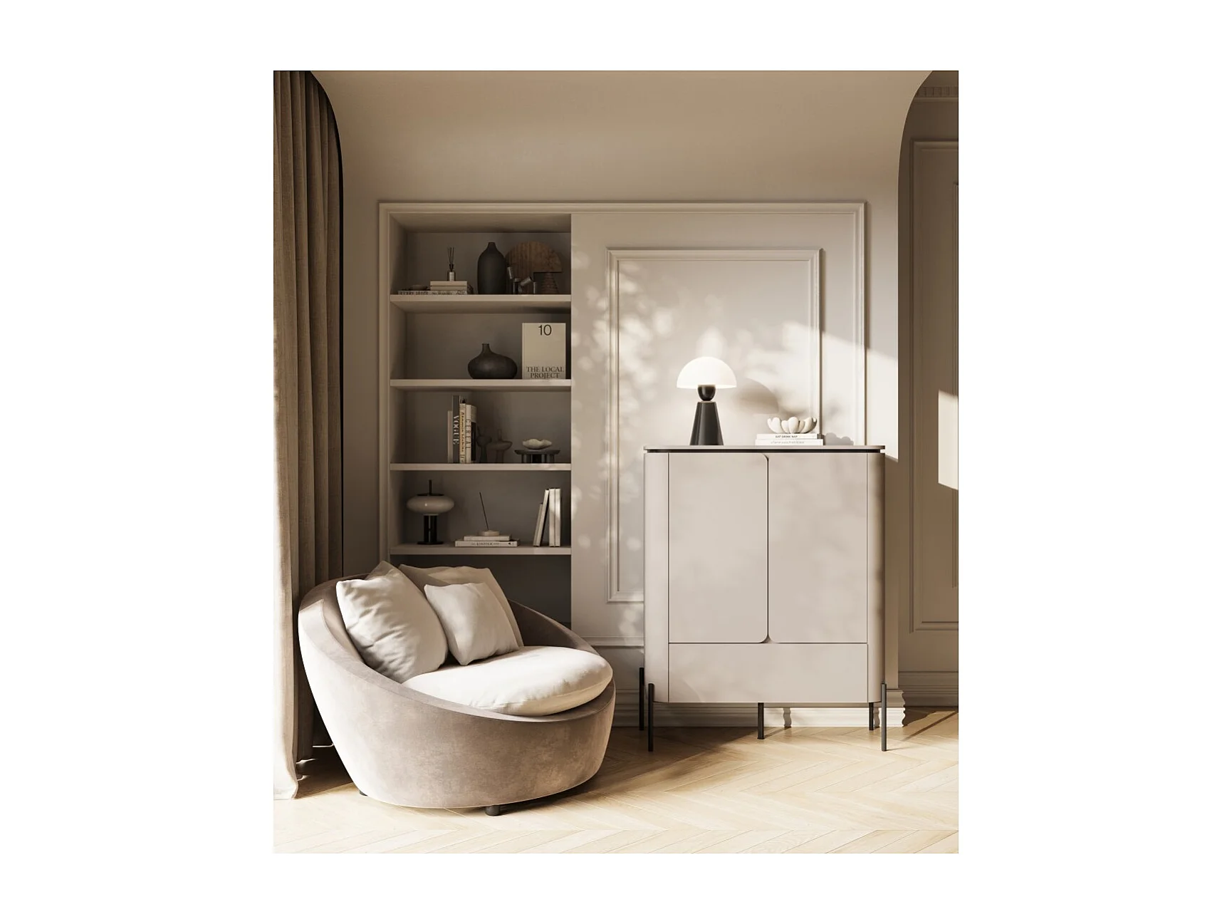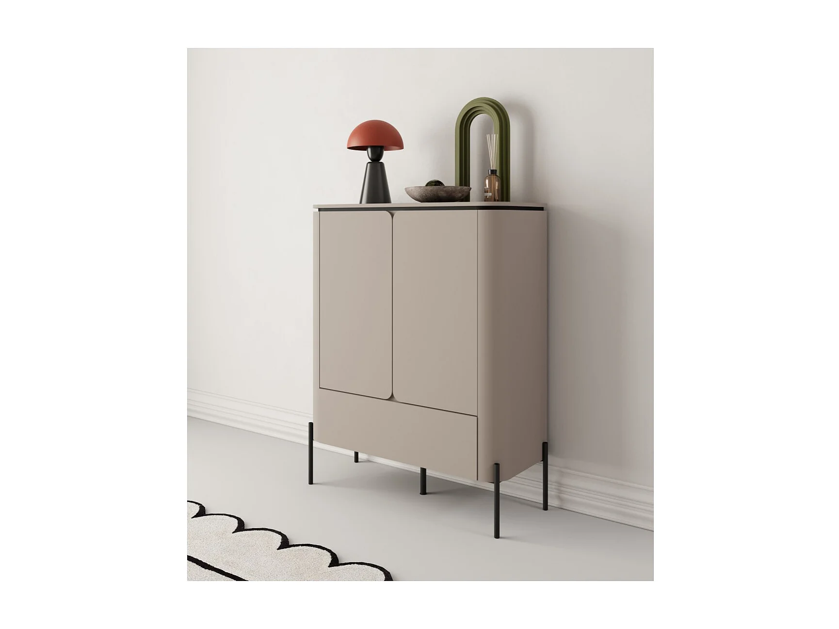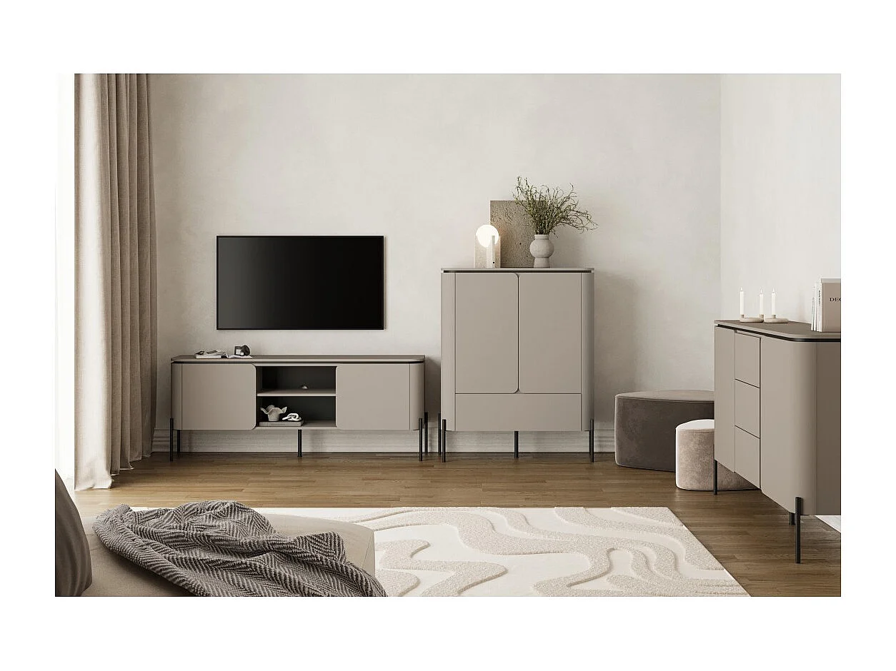 Buffet hoog BELLA 2 deuren 1 lade - Afwerking mat Congo - Elegante zwarte metalen poten