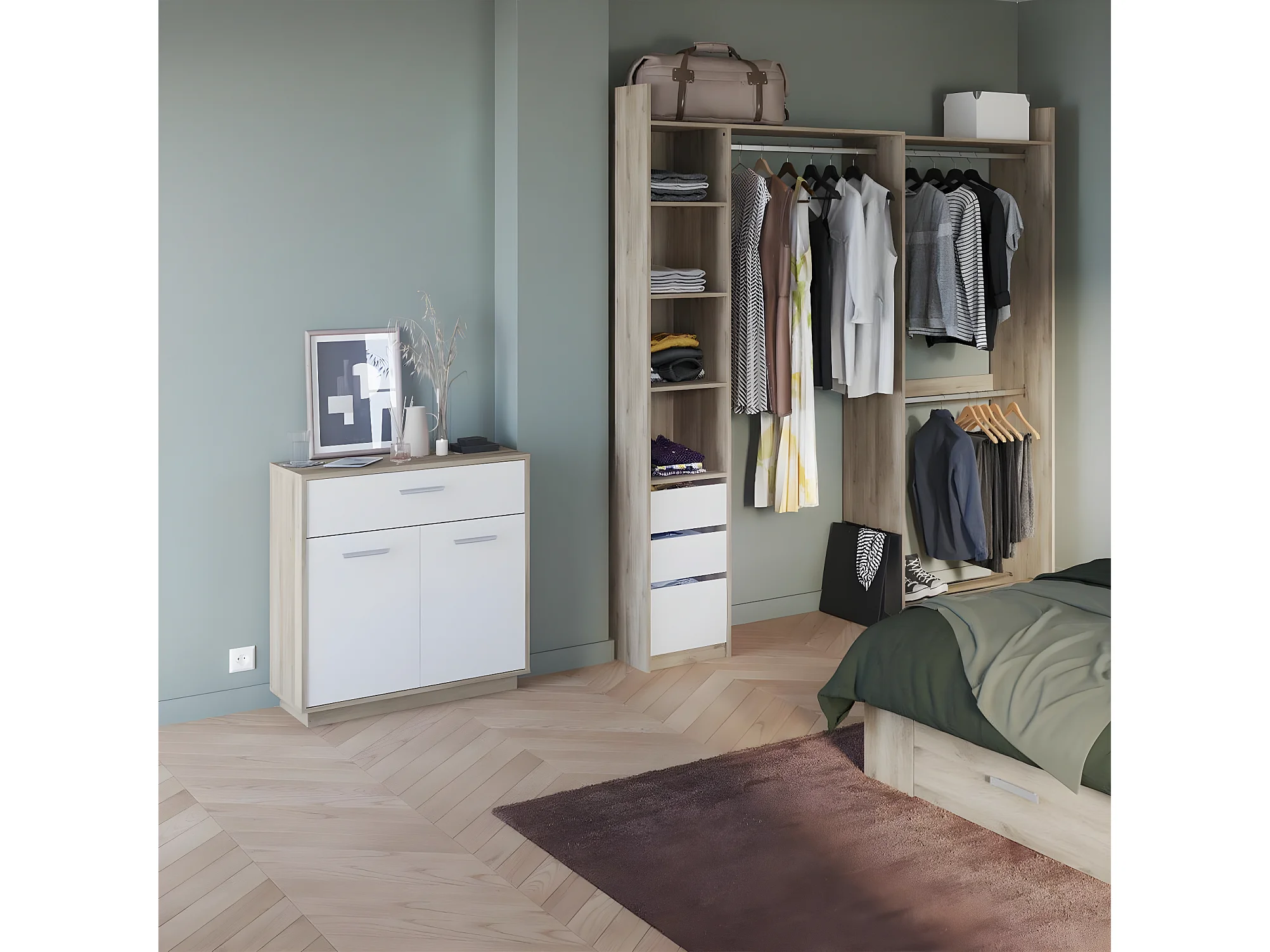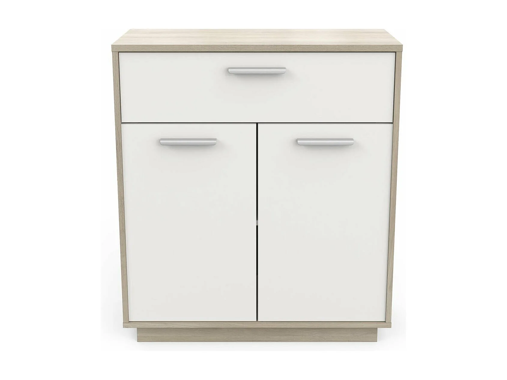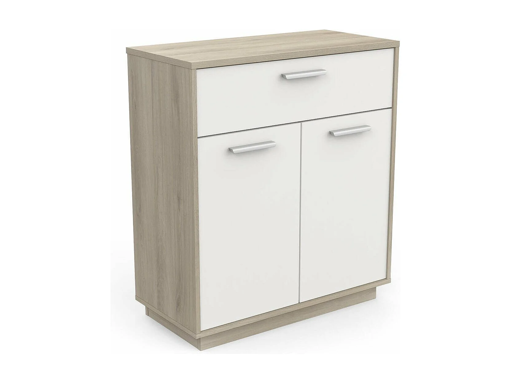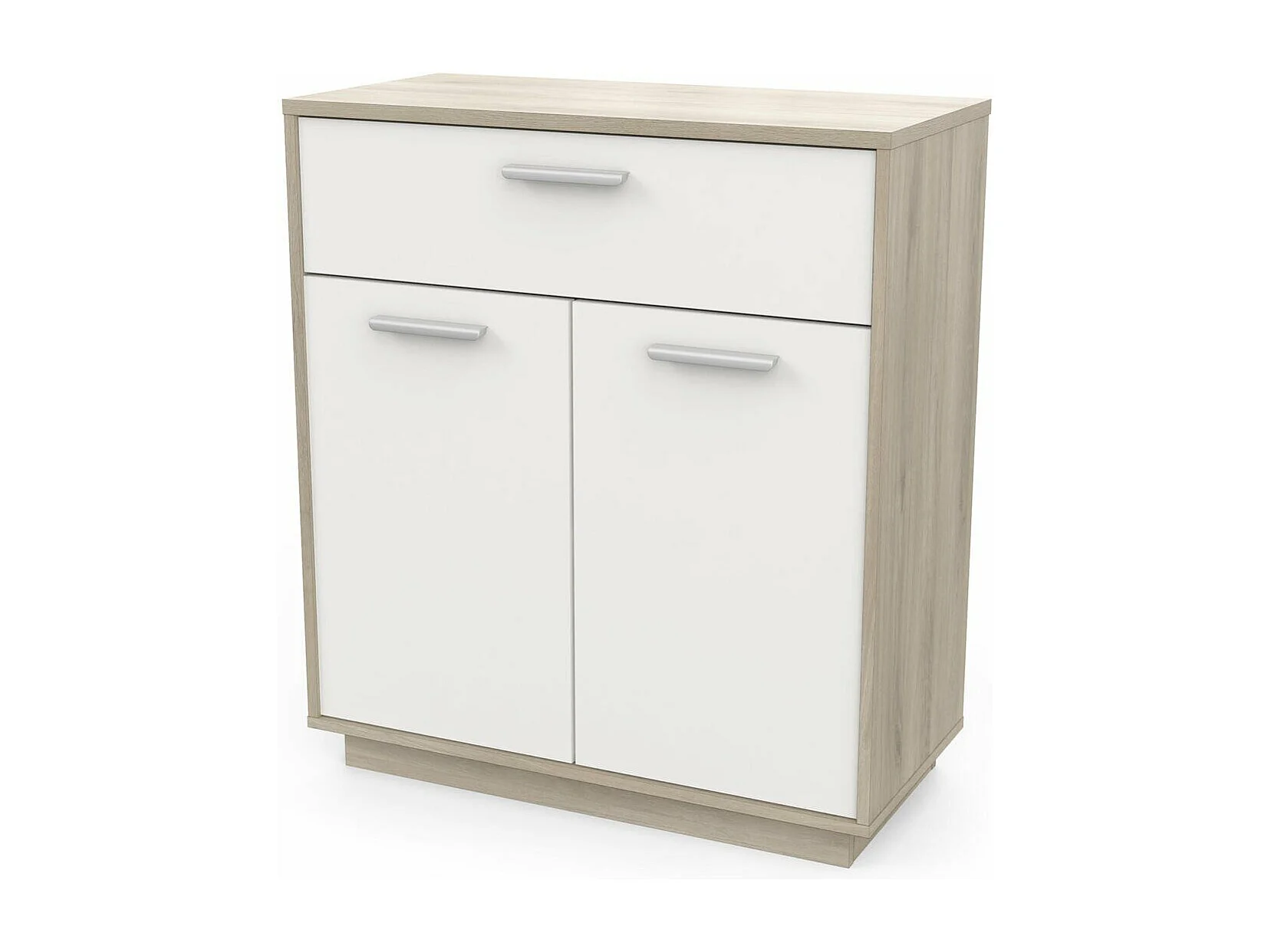 Buffet met 2 deuren en 1 lade, hout- en witdecor, 78 cm breed - Léo