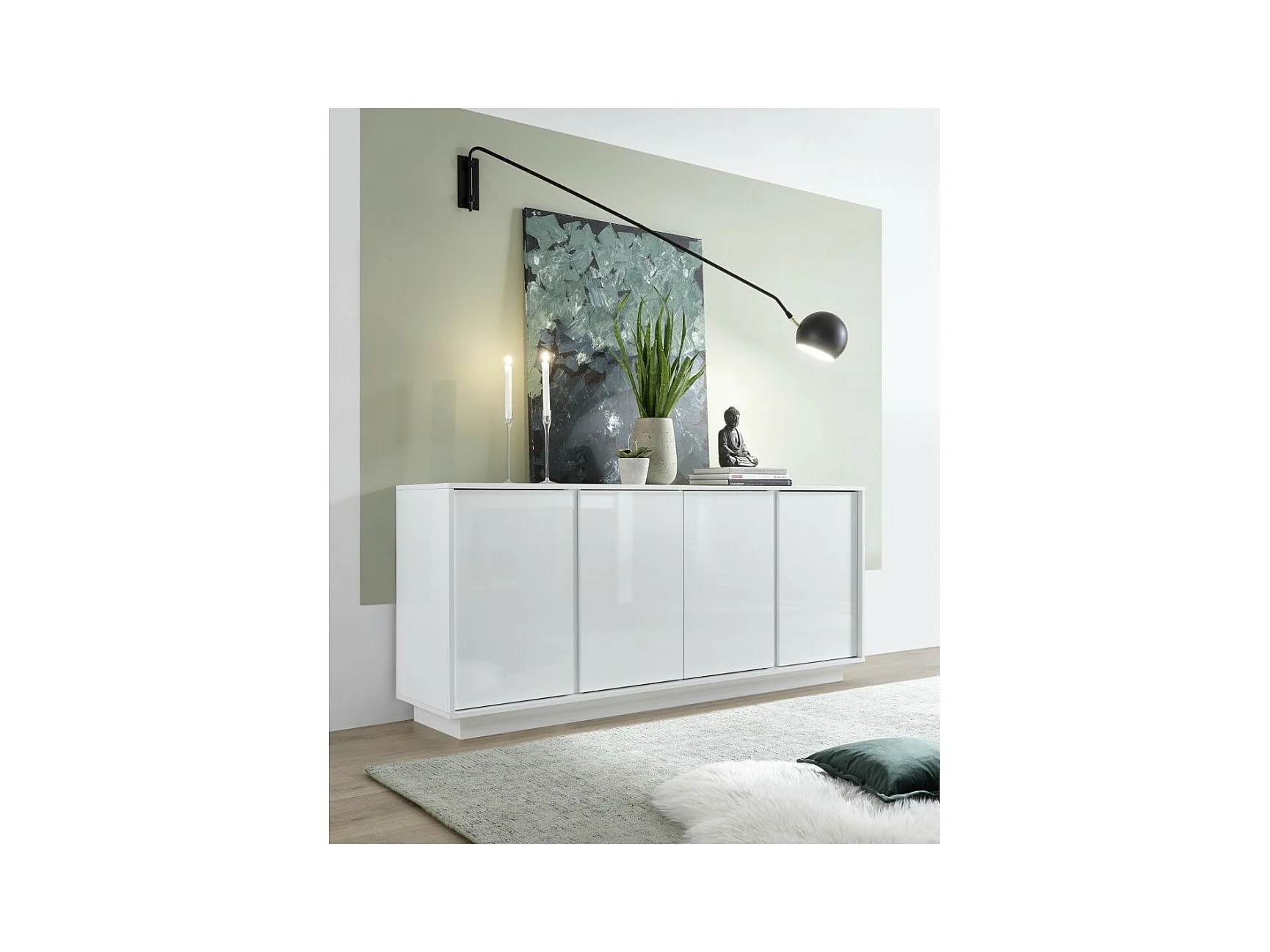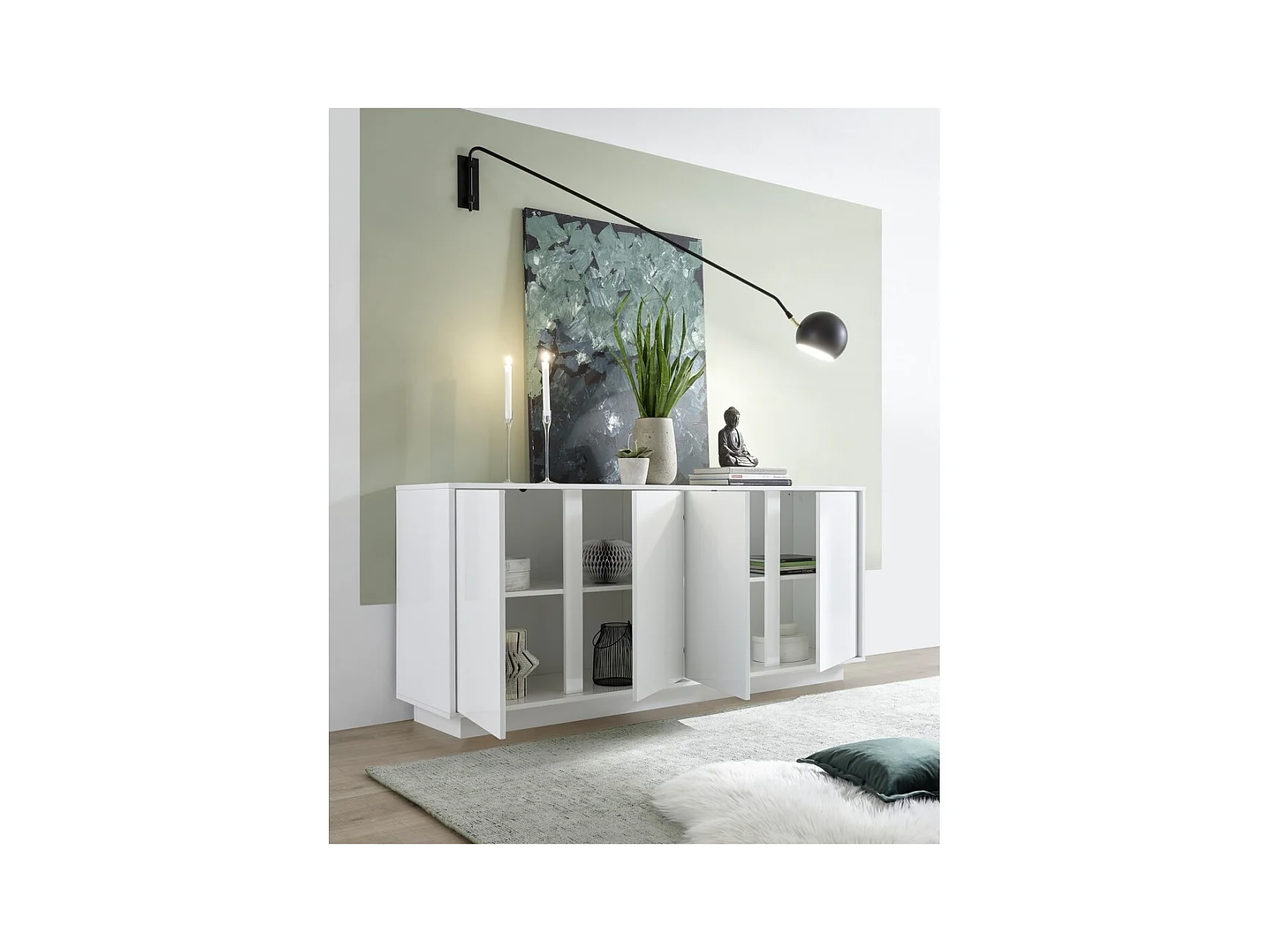 Buffet met 4 deuren, collectie CREAM, in glanzend wit gelakt, ideaal voor een modern woonkamer of eetkamer.