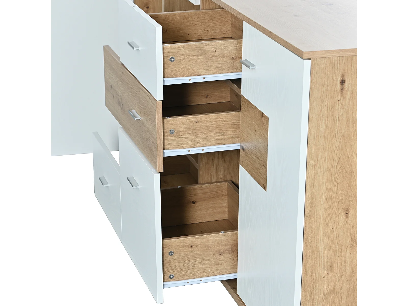 Buffetkast met LED-verlichting, opbergruimte, deuren en lades, glazen planken, 160 x 40 x 77 cm, wit