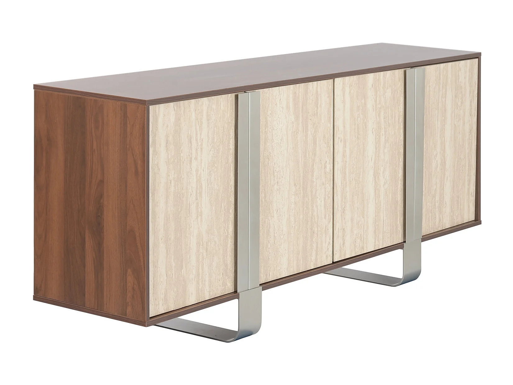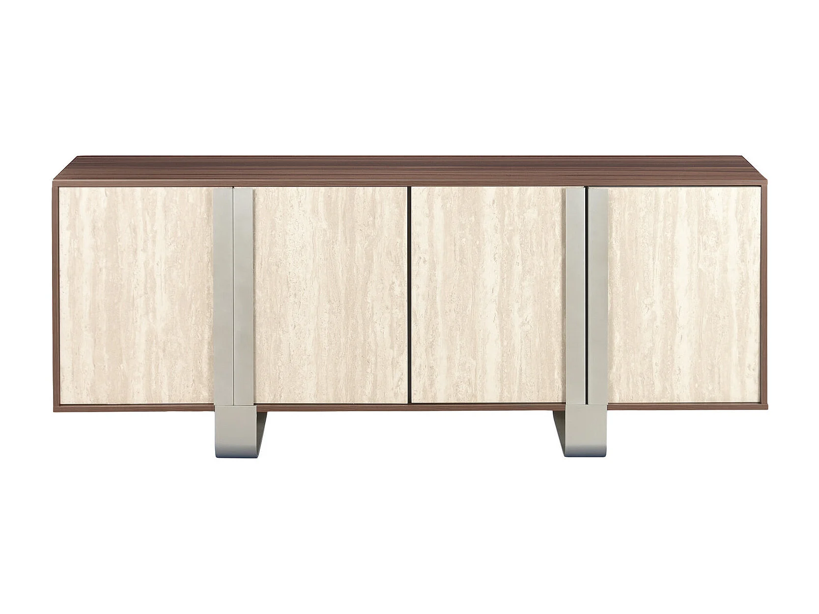 Buffetkast van MDF en metaal, 180x40x73,5 cm, bruin marmerlook.