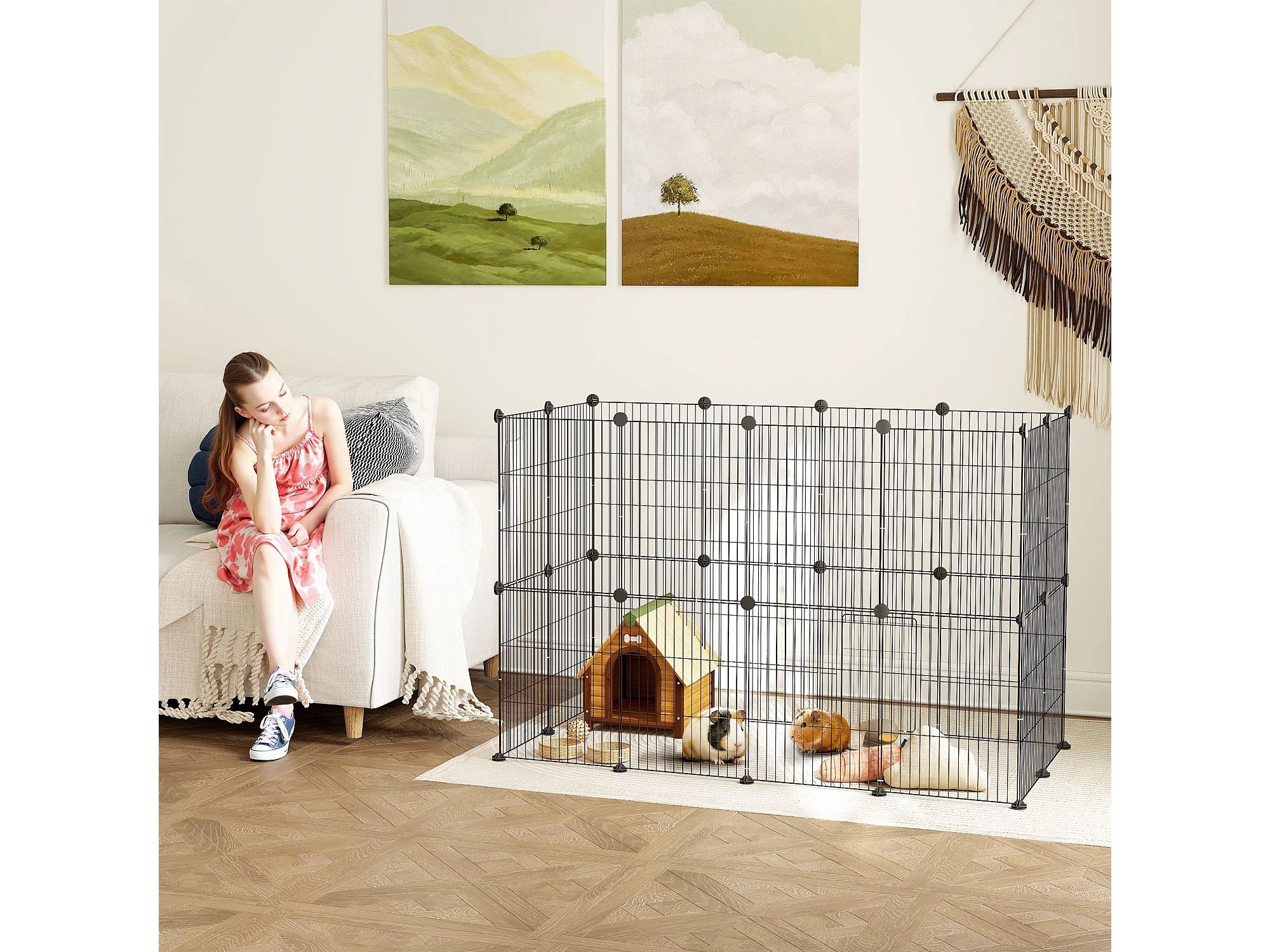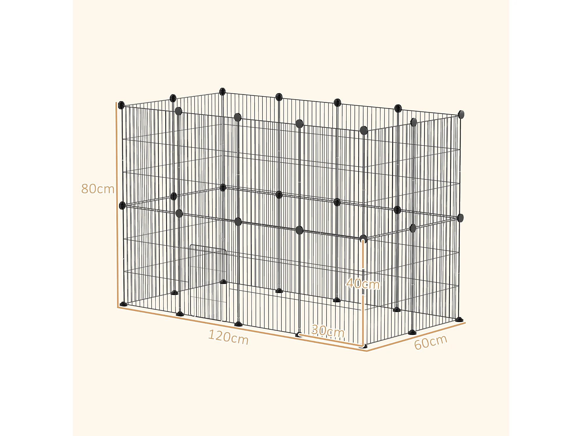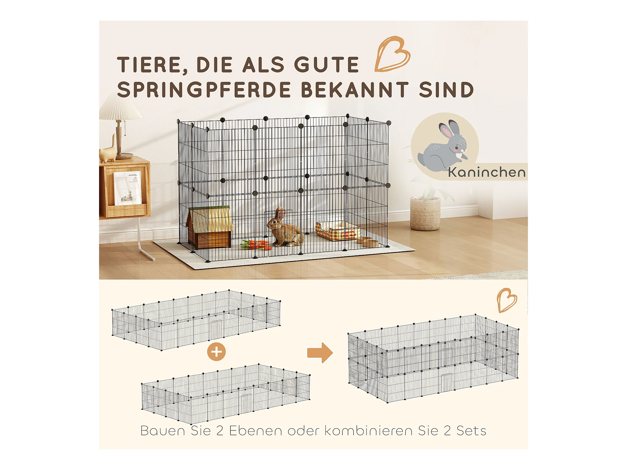 Recreatieverblijf voor puppy's en kleine dieren, modulair ontwerp, metaal, zwart (61x4x76 cm)