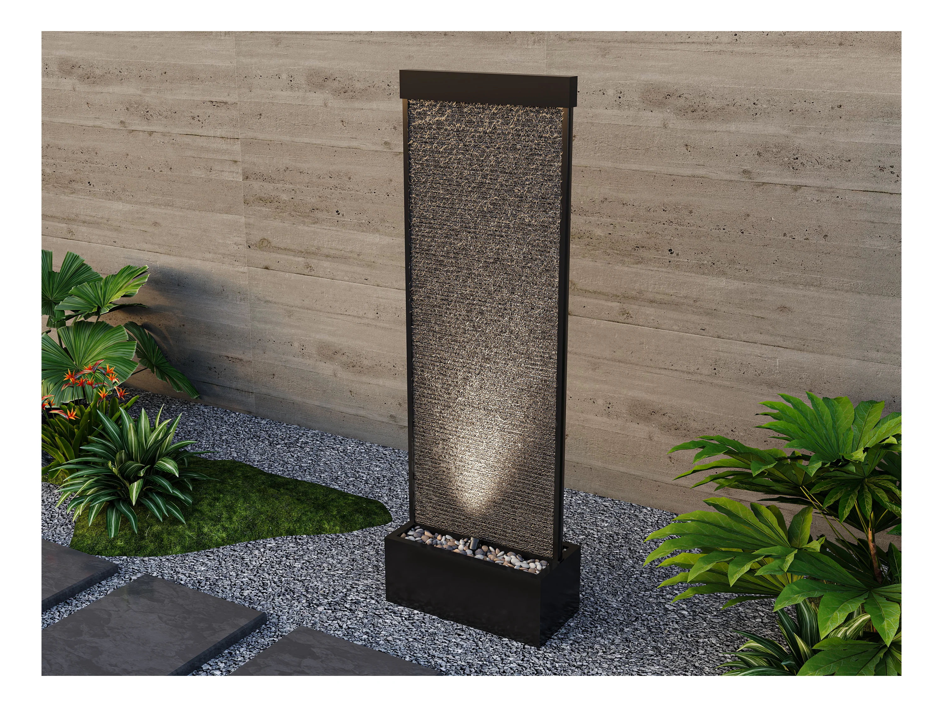 Buitenfontein van roestvrij staal en glas met ledverlichting - H120 cm - Zwart - BULBIE