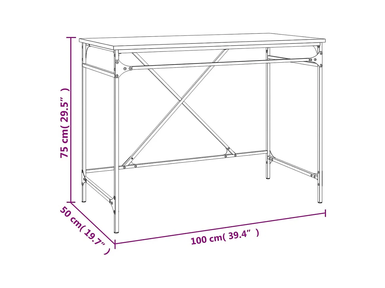 Bureau 100x50x75 cm bewerkt hout en ijzer zwart