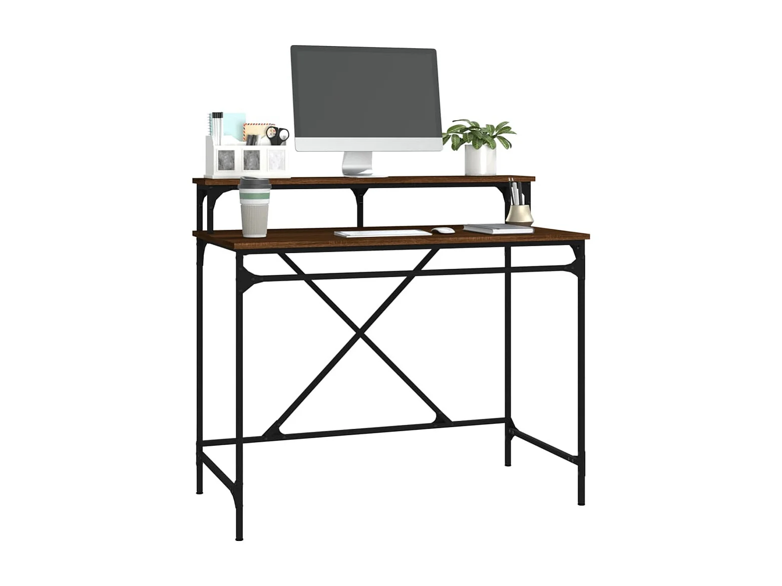 Bureau 100x50x90 cm bewerkt hout en ijzer bruin eikenkleur