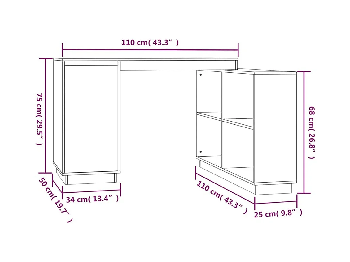 Bureaumeubel recht hout wit