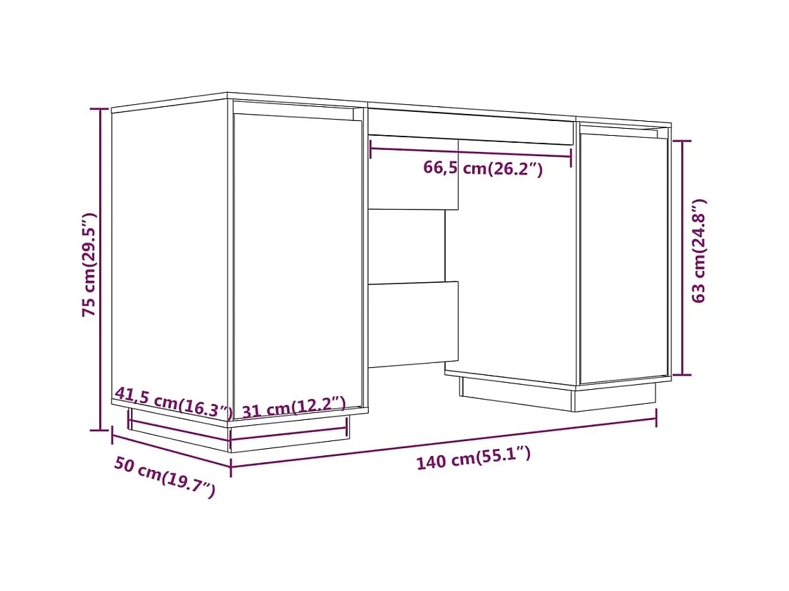Bureau 140x50x75 cm massief grenenhout