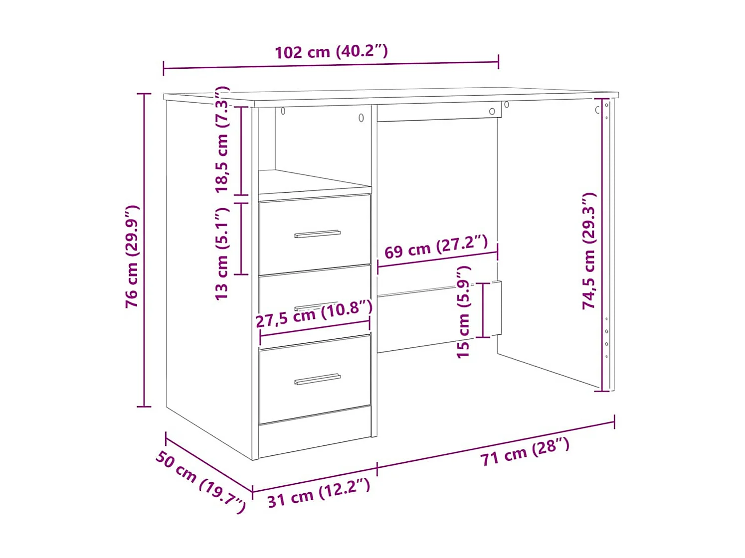 Bureau met lades 102x50x76 cm bewerkt hout gerookt eikenkleurig