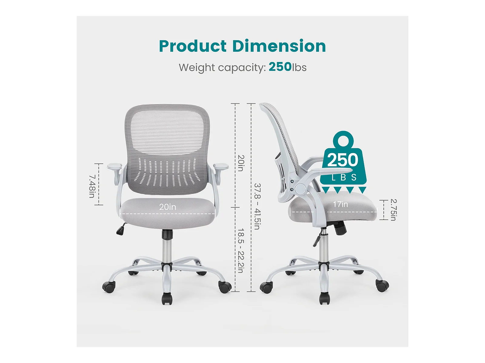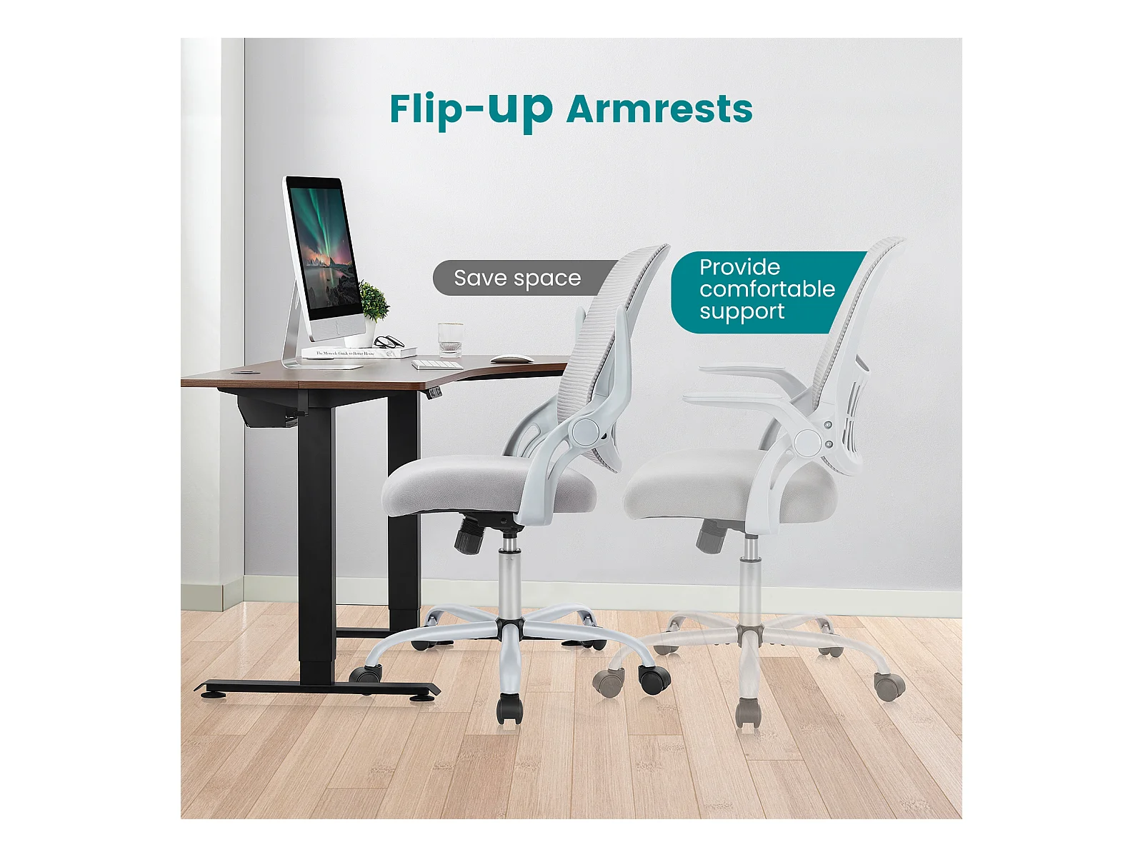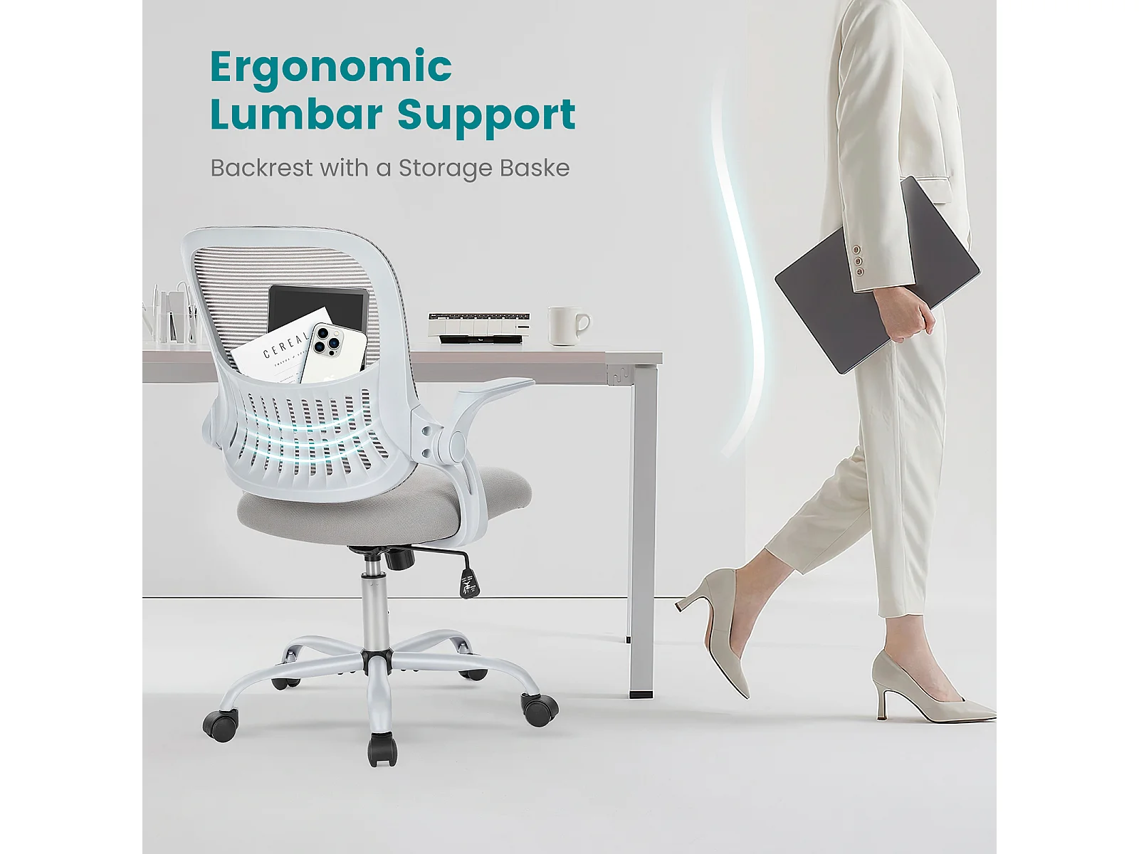 Bureaustoel met verstelbare voetring, hoge bureaustoel voor staand bureau, baliehoogte bureaustoelen, grijs