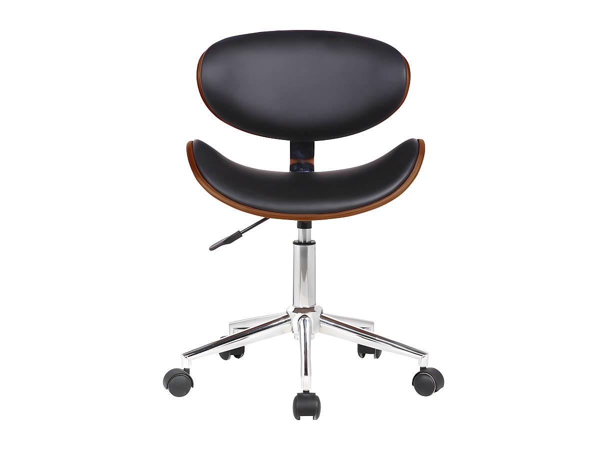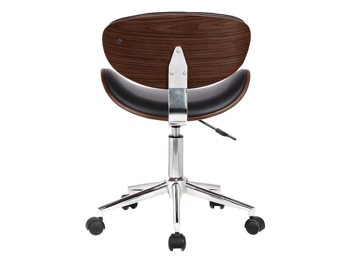 Val voor de unieke mix van de notenkleurige rugleuning en de zitting van zwart kunstleer van de bureaustoel met vintagestijl MONTENEGRO. U zult hem prachtig vinden omwille van zijn atypische vormen. De ingekeepte vorm van de zitting en de rugleuning die perfect aansluit op de rug en zijn brede randen, zorgen voor optimaal comfort. De zwart metalen poten van deze fauteuil garanderen stevigheid en uitstekende stabiliteit.