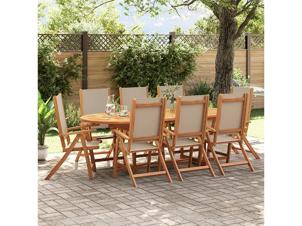 Bussum 9-delige Tuinset massief acaciahout en textileen