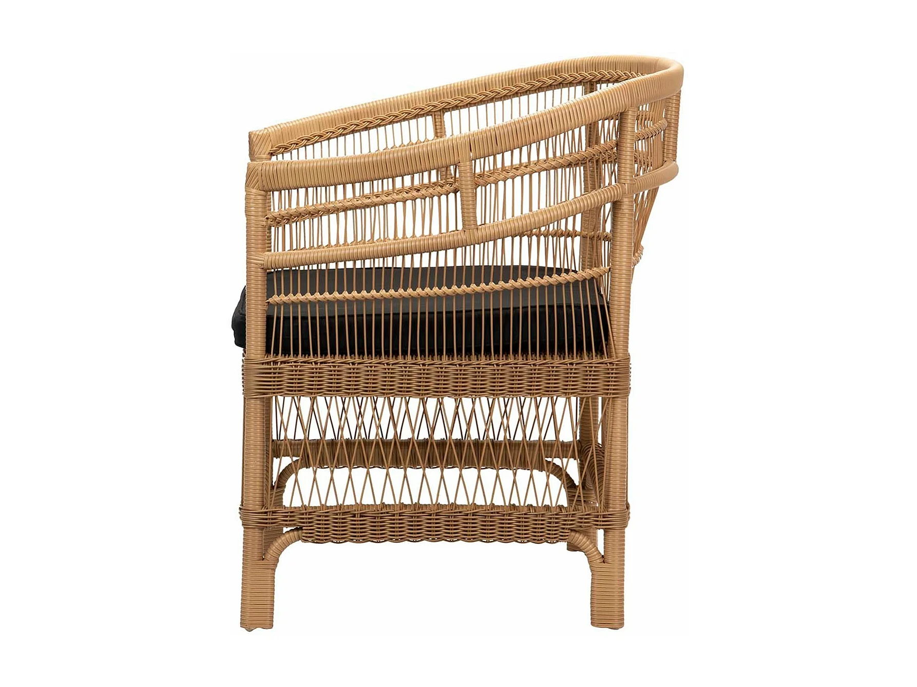 Stoffen beige fauteuil met houten poten uit de ENJOY-collectie. Scandinavische stijl.