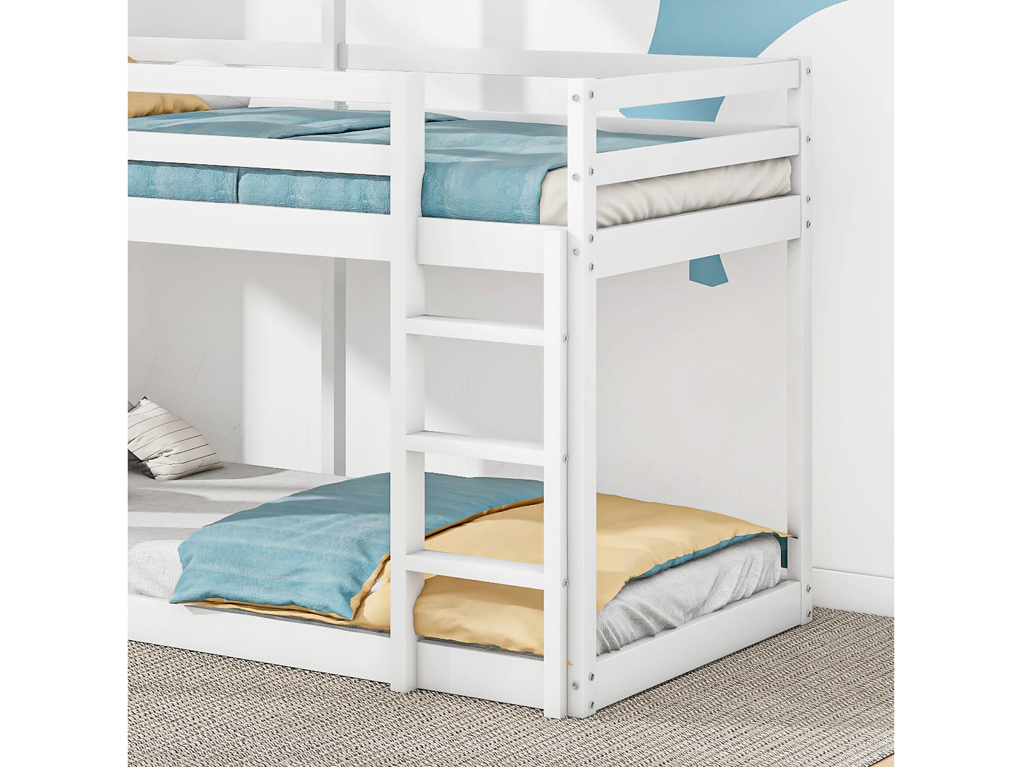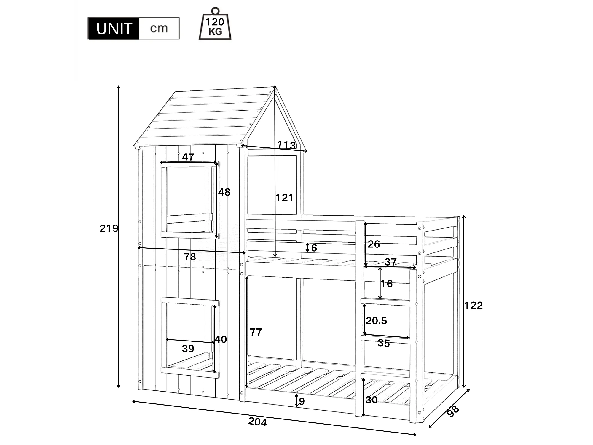 Cabine stapelbed 90x200cm - massief hout - met 2 ramen - Wit