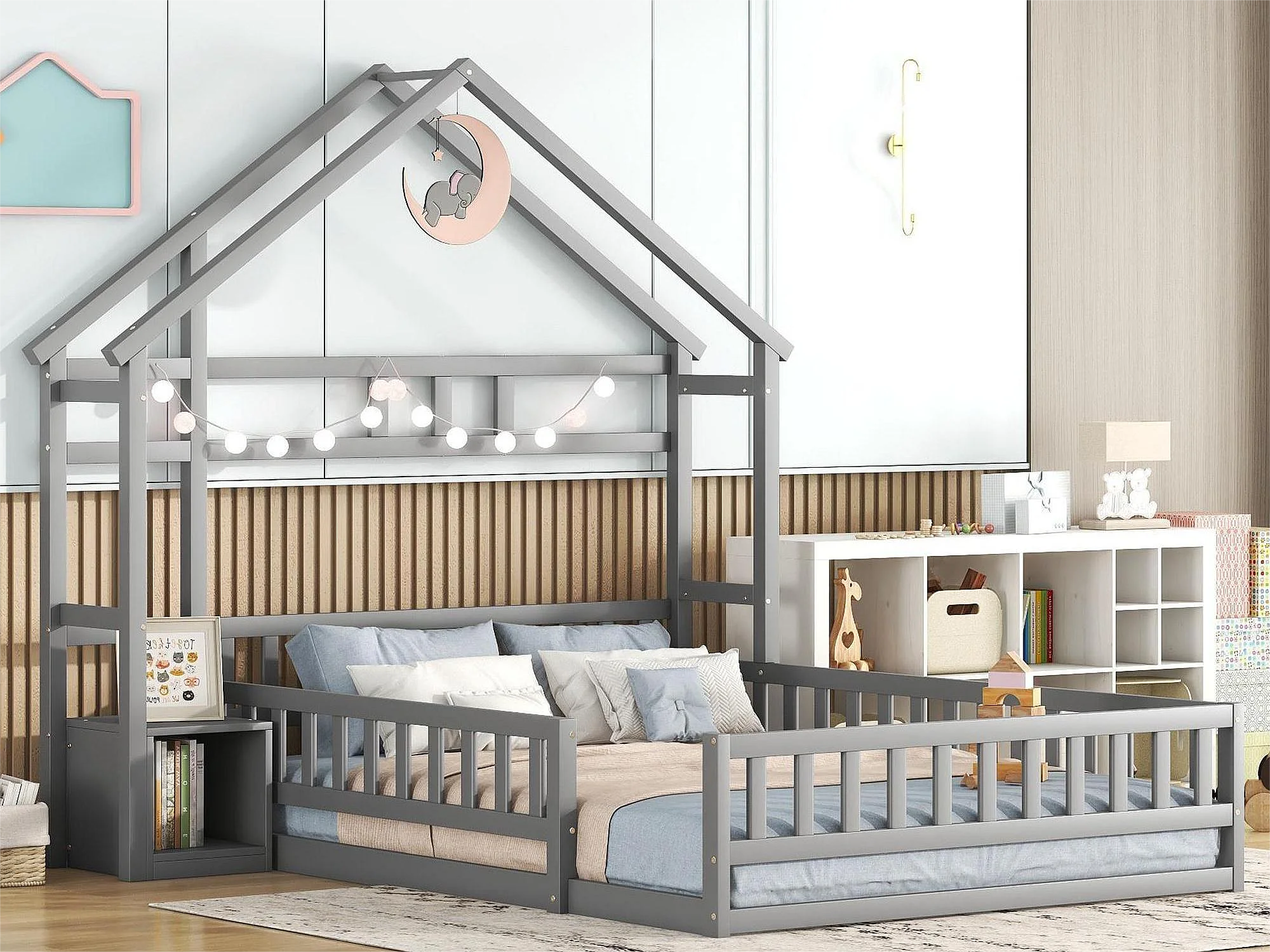 Kajuitbed 140 x 200 cm met nachtkastje - Dennen en MDF - Grijs